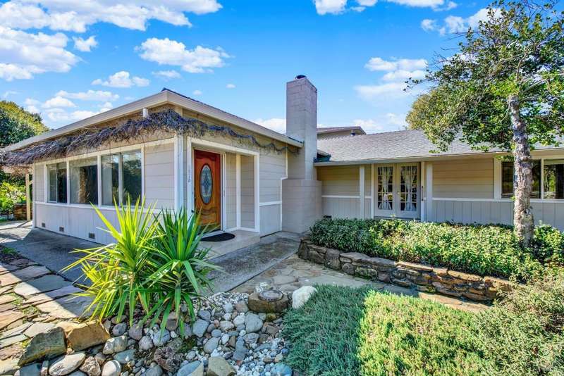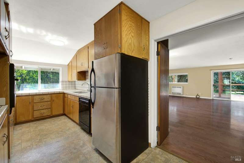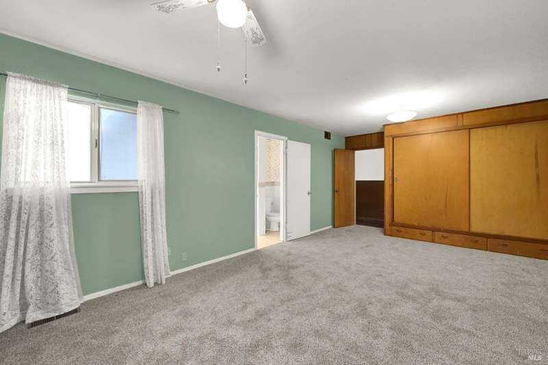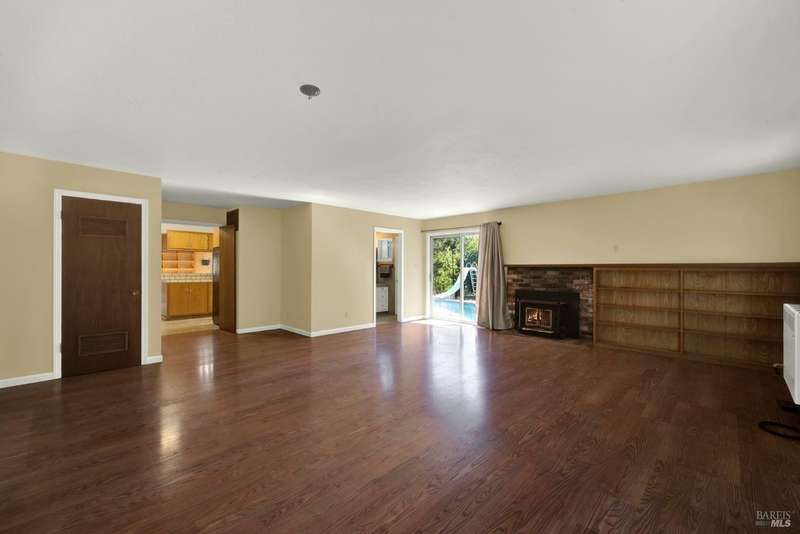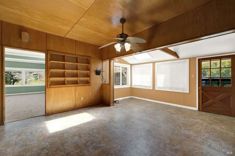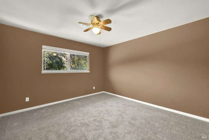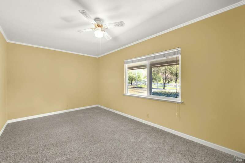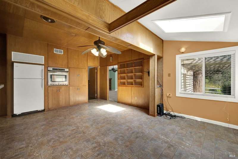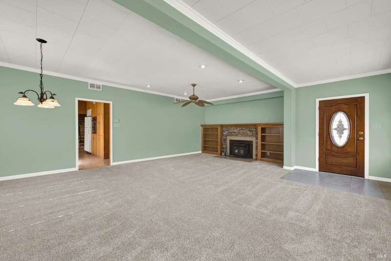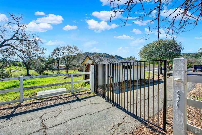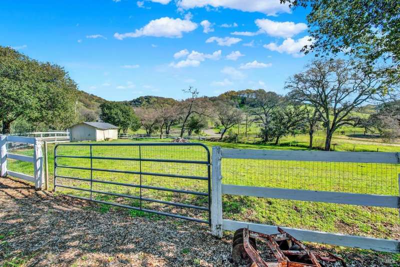Escape to this beautiful country retreat! Nestled on 3 acres of serene land, this spacious 7-bedroom, 3-bath home offers incredible privacy with room to roam. New carpet throughout. Enjoy stunning hillside views and the peaceful ambiance of a seasonal creek, along with the charm of a 6-bay barn. The home features separate living and family rooms, ideal for large families or those who love to entertain. Plus, with a built-in swimming pool complete with a slide, you'll have endless summer fun. Located just 10 miles from town, you'll have easy access to local amenities, yet still enjoy the peace and quiet of a dead-end road. The nearby wineries, including Caymus and Wooden Valley, make this an ideal location for wine lovers. With leased solar panels to help keep energy costs low, this property offers both comfort and sustainability.