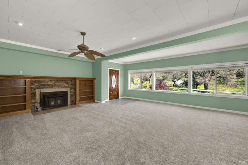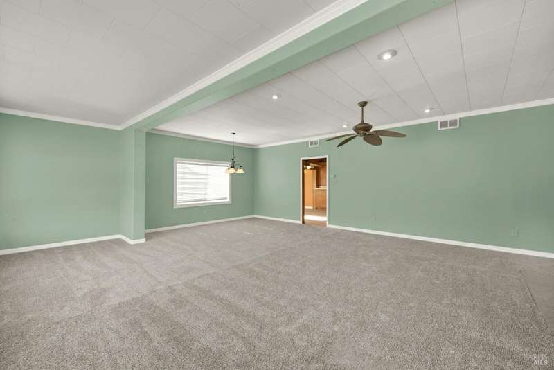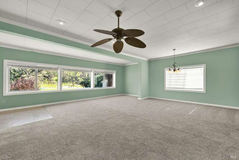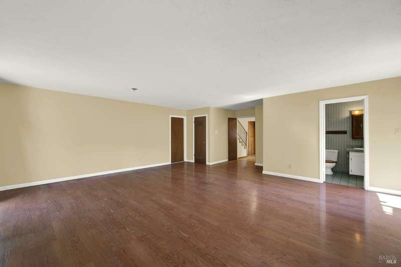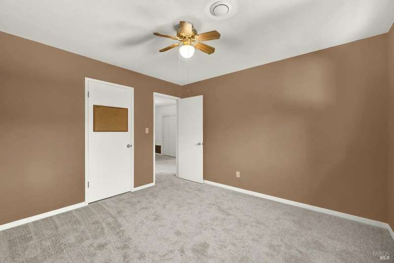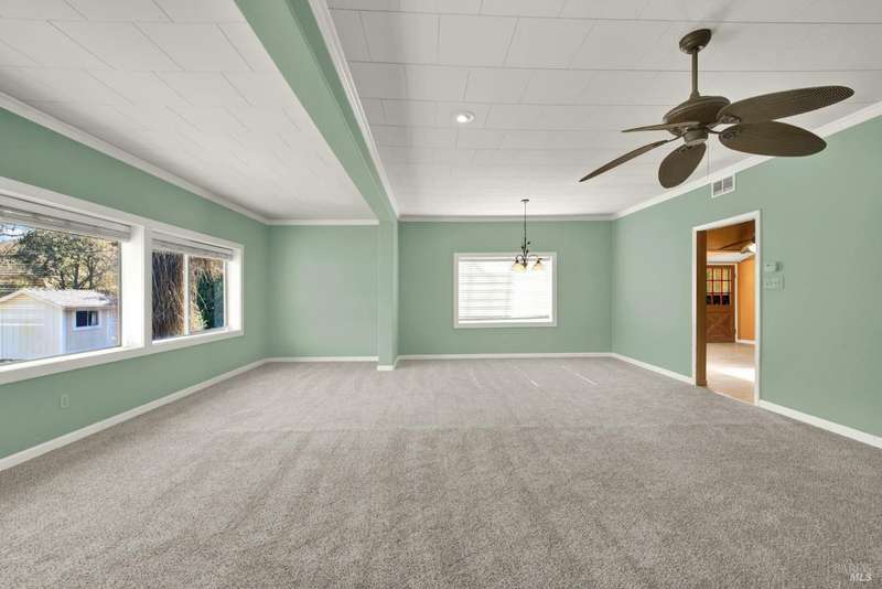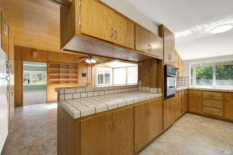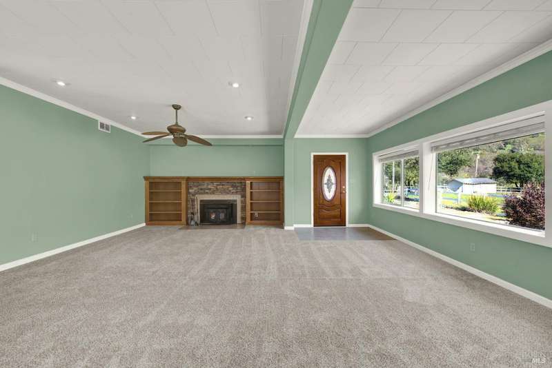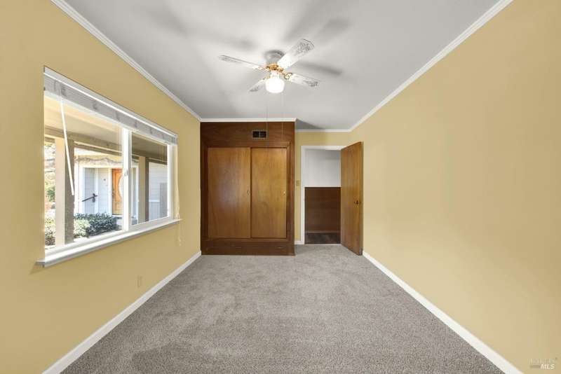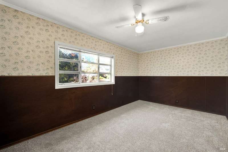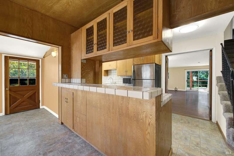 Escape to this beautiful country retreat! Nestled on 3 acres of serene land, this spacious 7-bedroom, 3-bath home offers incredible privacy with room to roam. New carpet throughout. Enjoy stunning hillside views and the peaceful ambiance of a seasonal creek, along with the charm of a 6-bay barn. The home features separate living and family rooms, ideal for large families or those who love to entertain. Plus, with a built-in swimming pool complete with a slide, you'll have endless summer fun. Located just 10 miles from town, you'll have easy access to local amenities, yet still enjoy the peace and quiet of a dead-end road. The nearby wineries, including Caymus and Wooden Valley, make this an ideal location for wine lovers. With leased solar panels to help keep energy costs low, this property offers both comfort and sustainability.