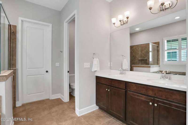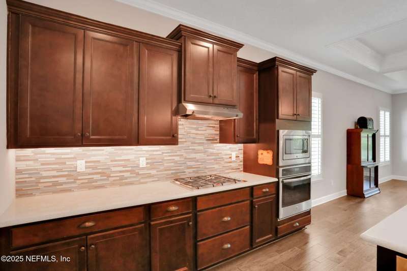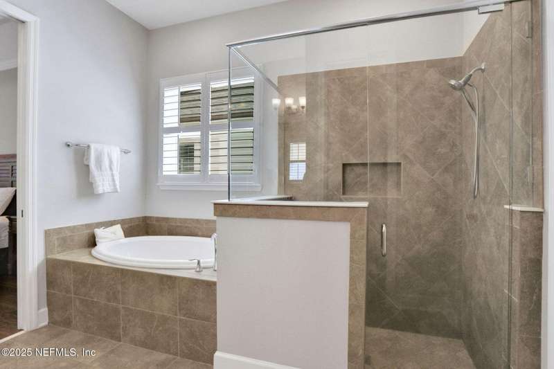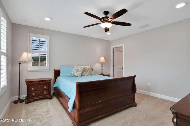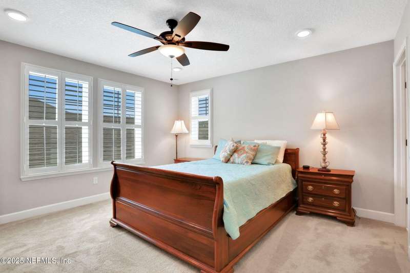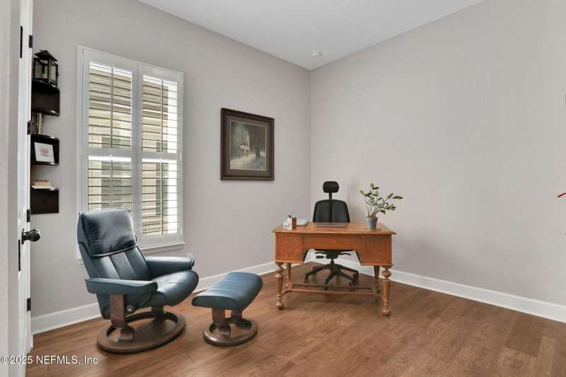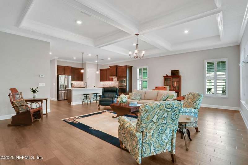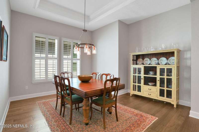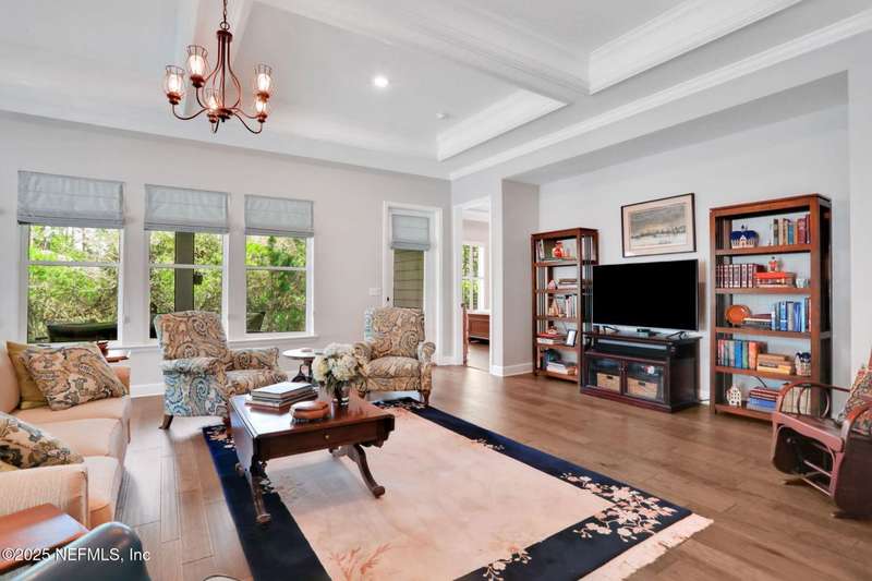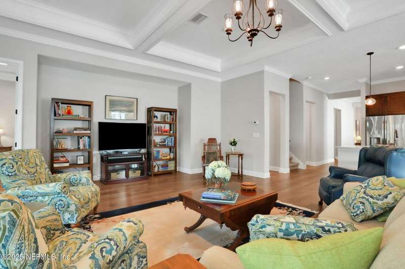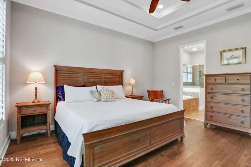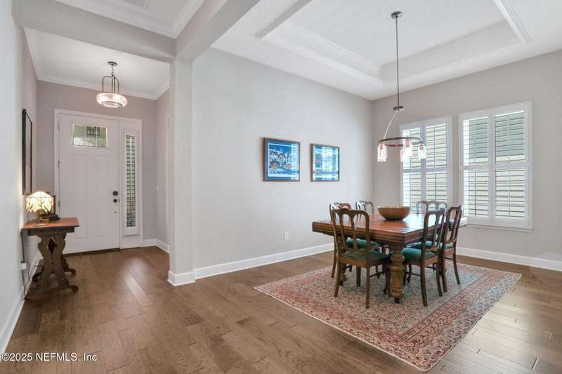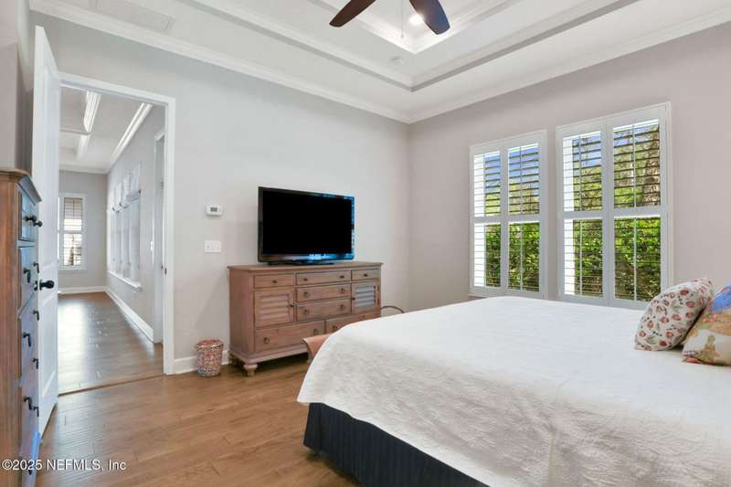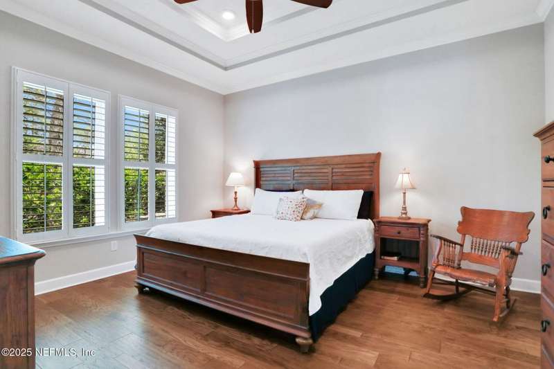 Welcome Home to 491 Stone Ridge Drive in Twenty Mile at Nocatee!Discover this beautifully designed residence nestled in one of Nocatee's most sought-after neighborhoods. From the moment you step inside, you'll appreciate the attention to detail and inviting layout that perfectly balances elegance and comfort.Throughout the first floor, enjoy rich wood-style flooring, crown molding, a coffered ceiling in the living room, and tray ceilings in both the formal dining room and the tranquil primary suite. The spa-inspired primary bathroom features a walk-in shower, separate soaking tub, and abundant natural light - your private retreat after a long day.The gourmet kitchen is a true highlight, offering a gas cooktop with externally vented hood, a spacious island, stainless steel appliances, and a walk-in pantry - ideal for cooking, entertaining, and gathering with loved ones. Custom shutters and Roman shades throughout add warmth, style, and privacy. Upstairs, a private suite with a full bath provides flexibility for guests, a home office, or multigenerational living. Step outside to the screened lanai overlooking the peaceful preserve lot, where the deep backyard offers space to add a pool or extend your outdoor living area. The EV charger in the two-car garage adds a touch of modern convenience.Life in Twenty Mile at Nocatee means enjoying parks, a community pool, dog parks, and multi-purpose trails for biking or golf cart rides. Plus, you're just minutes from all of Nocatee's exceptional amenities including top-rated schools, resort-style water parks, playgrounds, pools, and scenic nature trails.Whether you're relaxing at home, exploring Nocatee, or heading to the beach just 13 minutes away, this home offers the ideal blend of luxury, lifestyle, and location.Schedule your private tour today and experience why this home truly stands out!