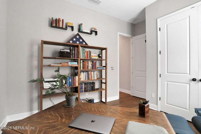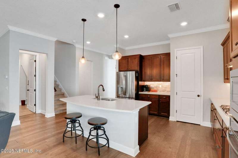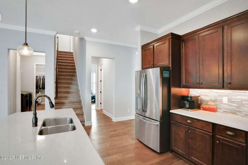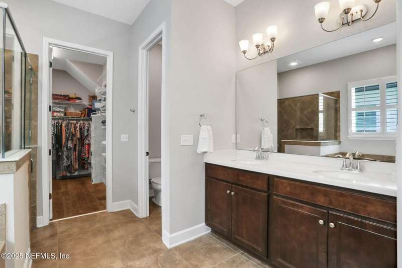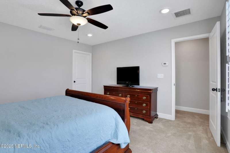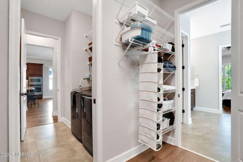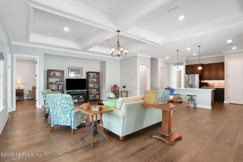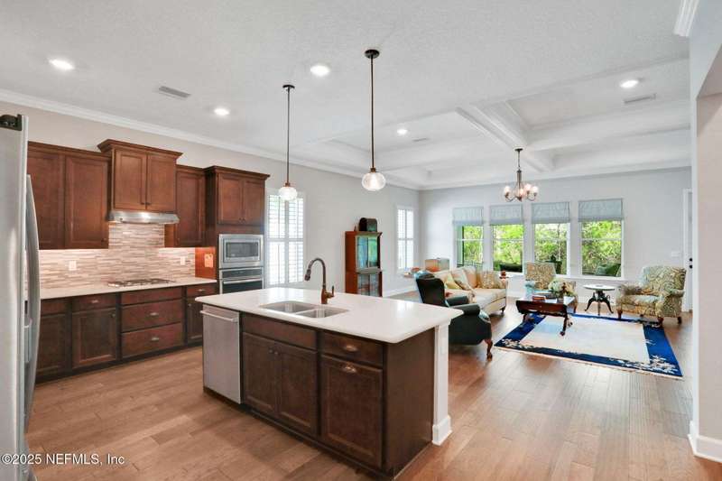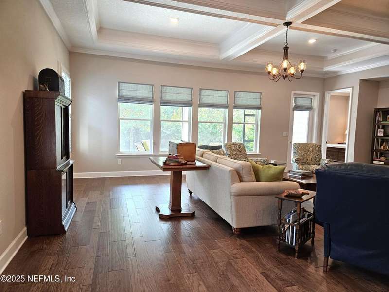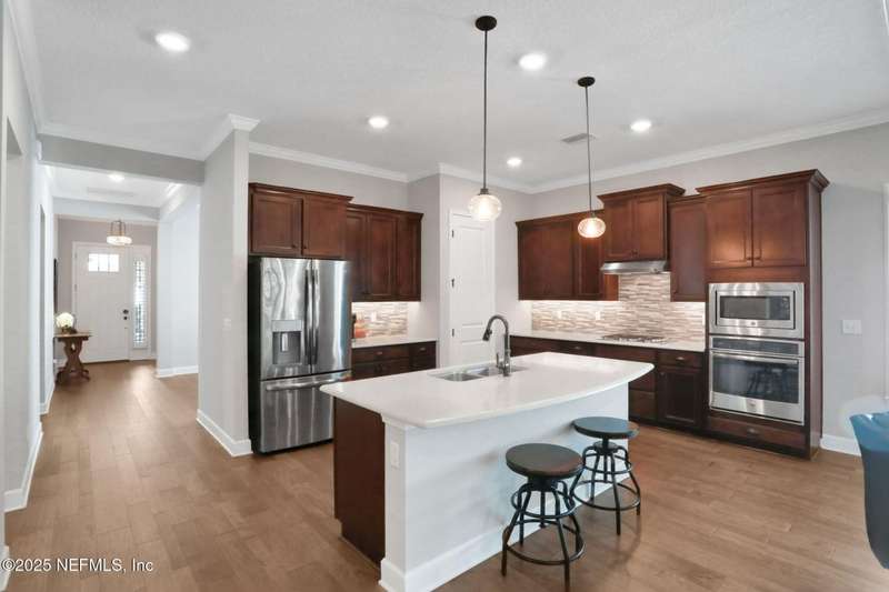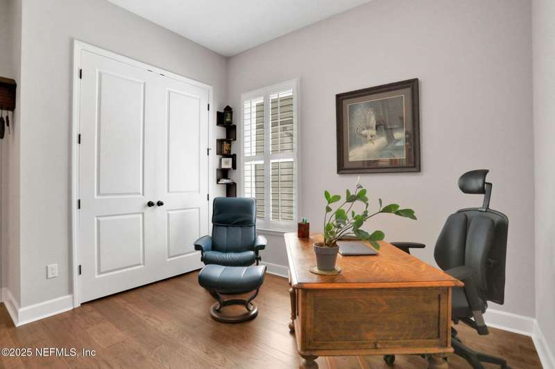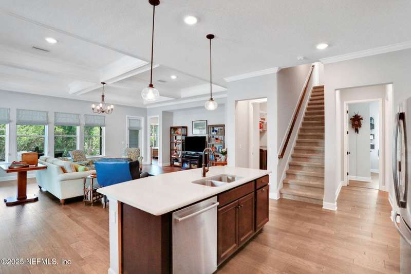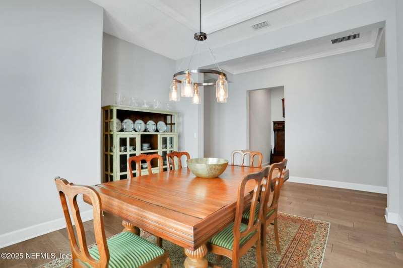 Welcome Home to 491 Stone Ridge Drive in Twenty Mile at Nocatee!Discover this beautifully designed residence nestled in one of Nocatee's most sought-after neighborhoods. From the moment you step inside, you'll appreciate the attention to detail and inviting layout that perfectly balances elegance and comfort.Throughout the first floor, enjoy rich wood-style flooring, crown molding, a coffered ceiling in the living room, and tray ceilings in both the formal dining room and the tranquil primary suite. The spa-inspired primary bathroom features a walk-in shower, separate soaking tub, and abundant natural light - your private retreat after a long day.The gourmet kitchen is a true highlight, offering a gas cooktop with externally vented hood, a spacious island, stainless steel appliances, and a walk-in pantry - ideal for cooking, entertaining, and gathering with loved ones. Custom shutters and Roman shades throughout add warmth, style, and privacy. Upstairs, a private suite with a full bath provides flexibility for guests, a home office, or multigenerational living. Step outside to the screened lanai overlooking the peaceful preserve lot, where the deep backyard offers space to add a pool or extend your outdoor living area. The EV charger in the two-car garage adds a touch of modern convenience.Life in Twenty Mile at Nocatee means enjoying parks, a community pool, dog parks, and multi-purpose trails for biking or golf cart rides. Plus, you're just minutes from all of Nocatee's exceptional amenities including top-rated schools, resort-style water parks, playgrounds, pools, and scenic nature trails.Whether you're relaxing at home, exploring Nocatee, or heading to the beach just 13 minutes away, this home offers the ideal blend of luxury, lifestyle, and location.Schedule your private tour today and experience why this home truly stands out!
