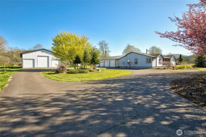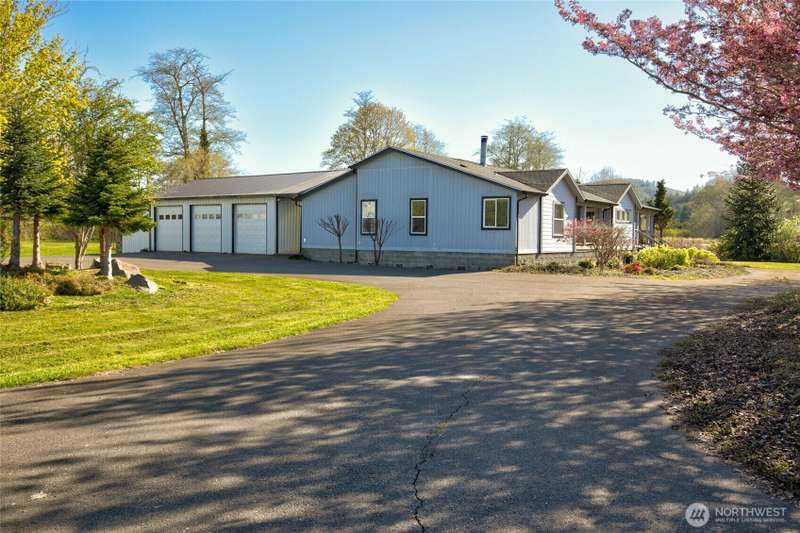 Beautiful 5.5 +/- acre property in the scenic Wynooche Valley, just 7 minutes from Montesano and 45 minutes to Olympia. This 2,426 +/- square foot triple-wide manufactured home features 3 bedrooms, 2 bathrooms, a family room, living room, spacious kitchen with walk-in pantry, two dining areas, and a luxurious primary suite with 5-piece bath, retreat/den, and walk-in closet. Enjoy the covered front porches and rear deck. Outbuildings include a 36'x28' garage with 12'x28' lean-to and a 60'x40' shop with 3 roll-up doors. and roll up door in the back. Paved driveway. Picnic/fireplace area. Mature blueberry bushes. Approx. 250’ of Wynooche River frontage. A peaceful setting with room to relax, work, and enjoy the outdoors.