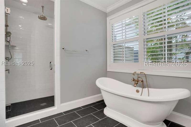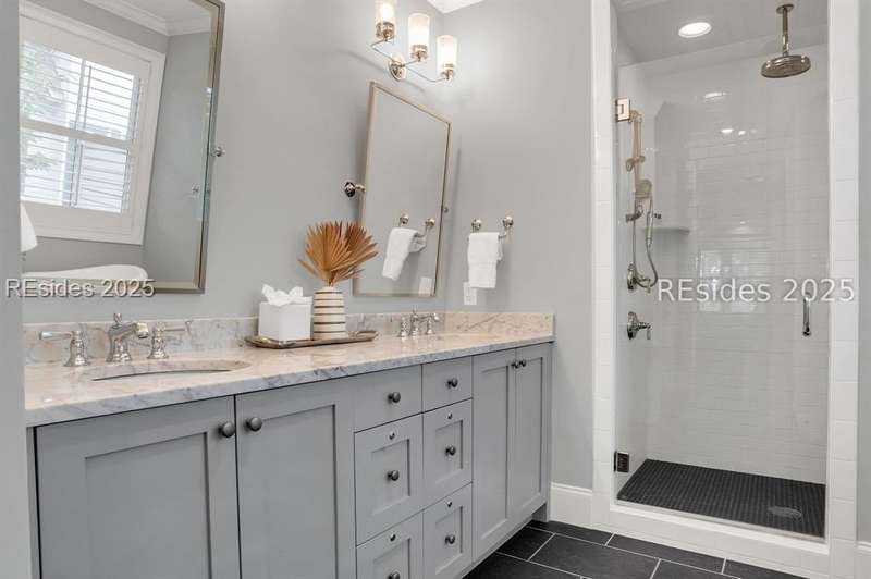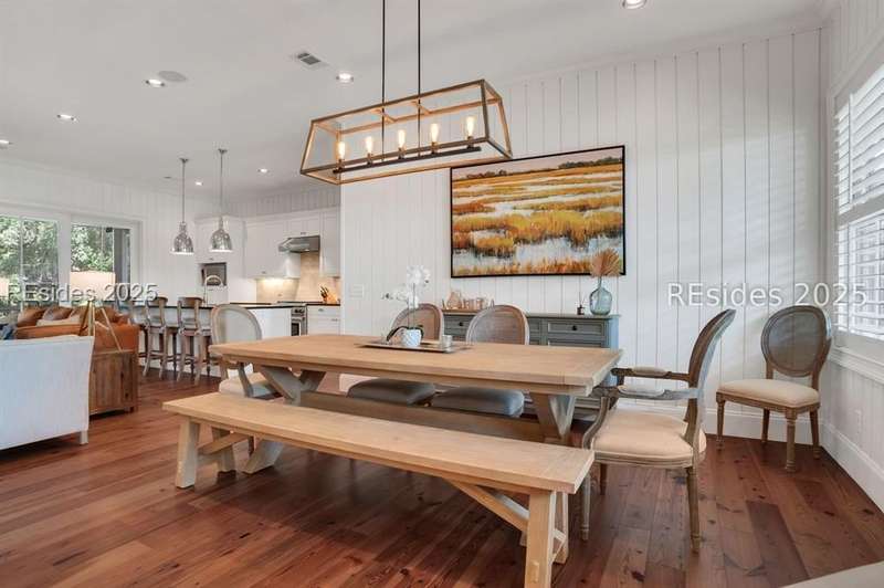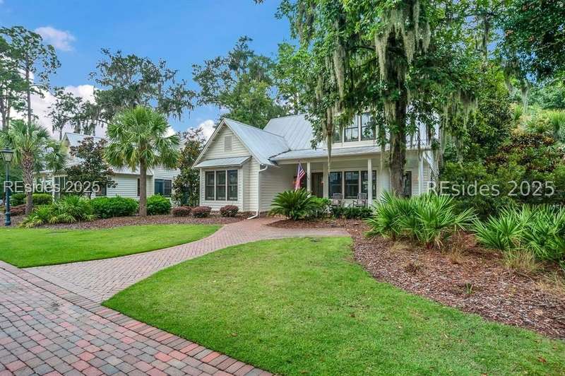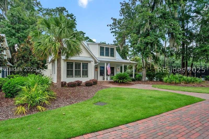 Situated within the heart of Wilson Lawn & Racquet, 5 Rumford Ln presents a Lowcountry-inspired short-term rental cottage comprising four bedrooms, a bonus room, and four bathrooms. The primary living areas exude a cottage-like ambiance, featuring a formal dining area, a brick hearth, and an open kitchen flanked by dual sliding doors. Rich accents of shiplap, Savannah brick, and knotty pine impart a sophisticated visual appeal to these main spaces. The primary suite boasts ample walk-in closets, a private bathroom equipped with a soaking tub and walk-in shower, and a spacious living area. Two full suites are situated on the second floor, along with a third guest or bonus room, and a screened patio provides year-round enjoyment.