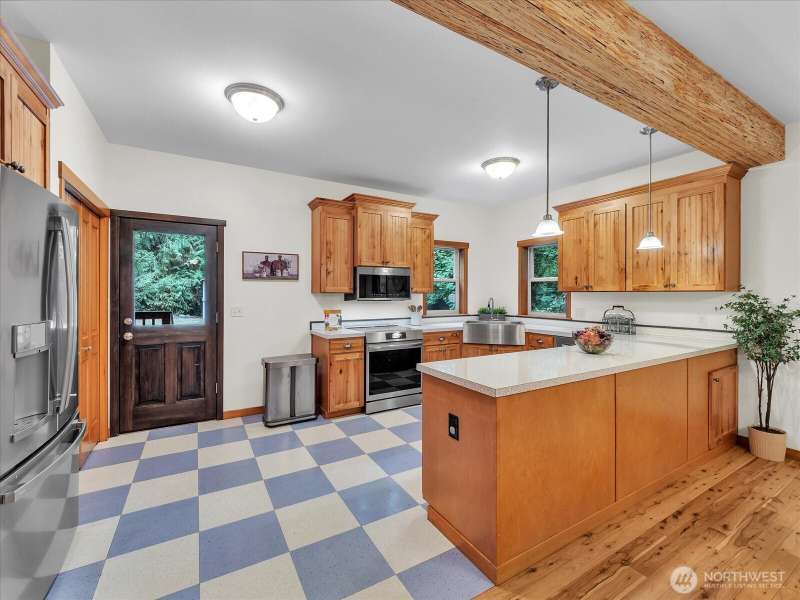 New Price! Welcome to the Lake Marcel community & a modern farmhouse on a large corner lot; just blocks from the private lake and Stillwater Elementary. A charming covered porch leads to a dramatic interior with lofty ceilings and a two-sided river rock gas fireplace which connects the open concept kitchen at the heart of the home. Upgraded millwork and unique touches throughout the home elevate the feel. The versatile floor plan includes a 2nd kitchen with bonus room access for possible separate living quarters. Ideal setting inside and out for relaxing or entertaining. Plus, refreshing activities on the lake & at two private beaches nearby. Abundant parking and level fenced backyard with an elevated deck/tree fort nestled among tall trees