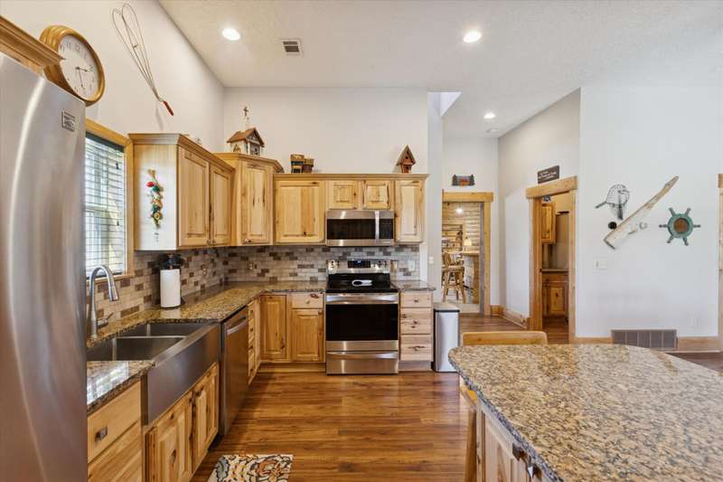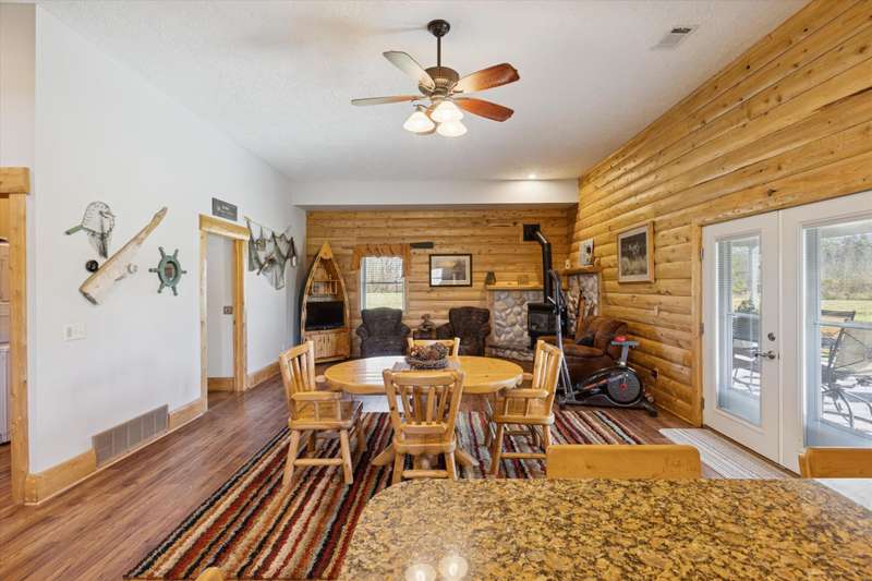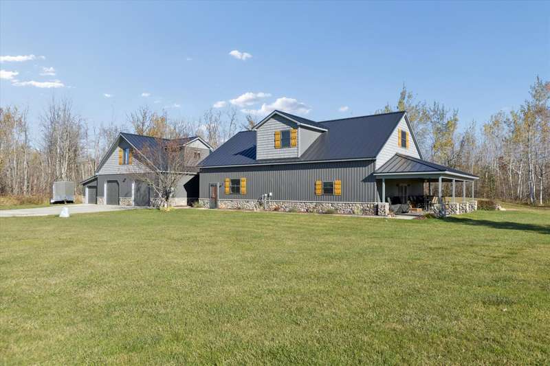 Discover the ultimate blend of comfort and sophistication with this fully furnished, turnkey property set on nearly 40 acres along the serene Black River in Cheboygan. Designed for both relaxation and recreation, this estate offers unmatched access to Northern Michigan’s natural beauty — with opportunities to hunt, fish, kayak, and explore just minutes from Black Lake and Black Mountain. The beautifully updated main residence features 3 spacious bedrooms and 2 baths, highlighted by an open-concept living area with a stylish kitchen, dining, and great room. Recent high-end updates include new siding and windows (2023), a new steel roof with stone accents (2024), and a stunning covered porch with stamped concrete patio — perfect for entertaining or taking in the peaceful surroundings. A private guest apartment with its own entry and utilities offers 1 bedroom, 2 baths, a full kitchen, and heated garage — ideal for guests or income potential. Completing the property are a large pole barn, pavilion, dock, and storage shed, creating a rare opportunity to own a luxurious four-season retreat in Northern Michigan’s most scenic setting.
