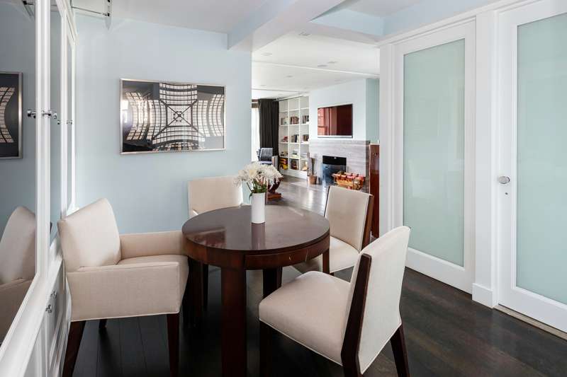 Additional highlights of this magnificent offering include custom millwork throughout, ebony stained solid oak flooring, large paneled diffused glass doors for poetic light penetration, bespoke garment level window draperies and wooden blinds, and ample storage.