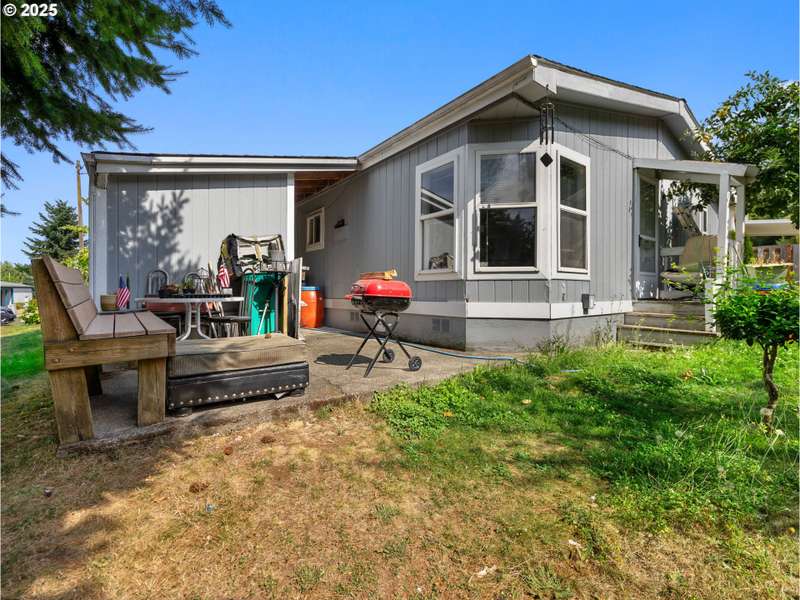 Back on market! Cash only! Seller may need rentback, and home is being sold As Is. Welcome to this well-maintained 3-bedroom manufactured home in a peaceful 55+ community that backs up to scenic Powell Butte Nature Park—611 acres of meadows, forest, and tranquil trails right outside your door. Inside, enjoy a spacious layout featuring a large primary suite, an office/den, a big laundry room, and abundant natural light from the skylights. The kitchen includes a cozy breakfast nook, perfect for enjoying your morning coffee. Stay cool in summer with central AC, and rest easy knowing the roof is less than 10 years old. Step outside to your private backyard retreat with an apple tree, raised garden beds, and a generous patio—ideal for relaxing or entertaining. With no neighbors behind, this lot location is prime! Space rent is $670/month.
