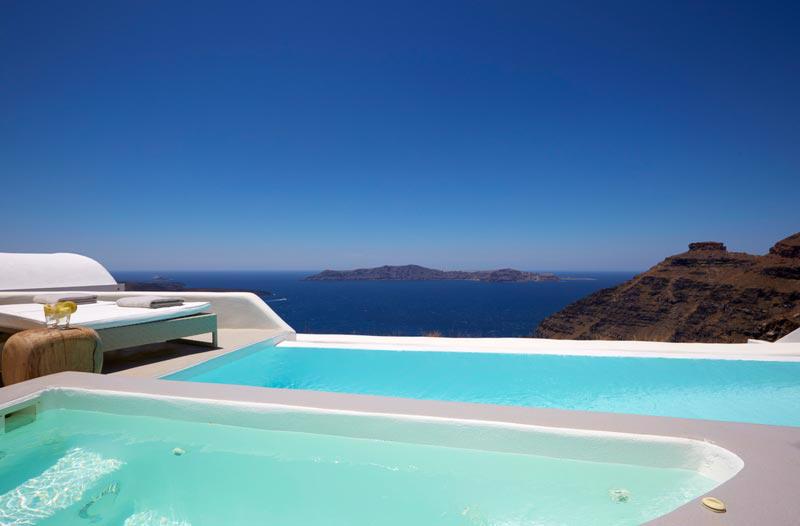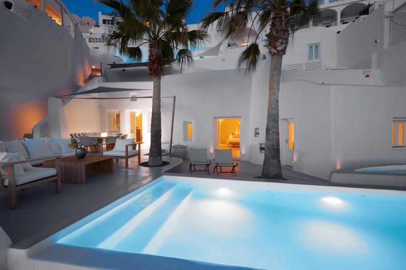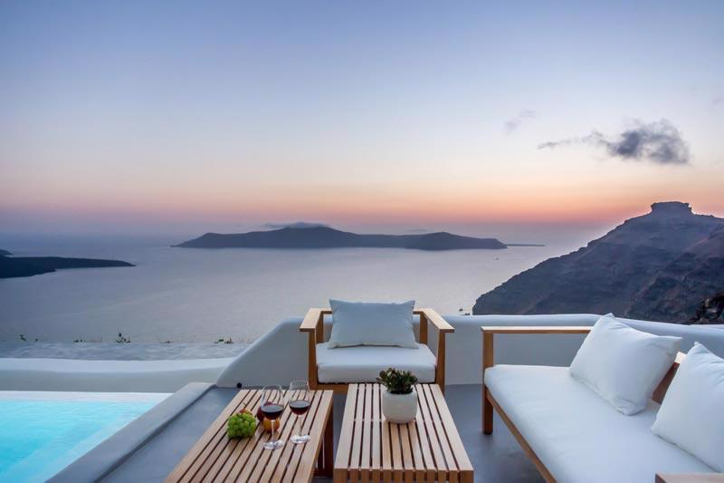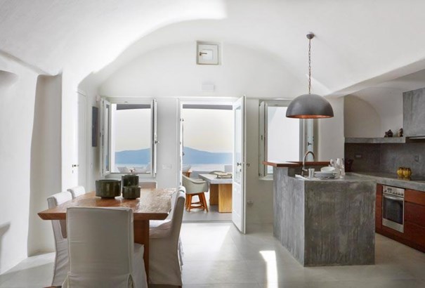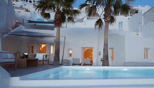 A luxury villa built on a plot of land 580 square meters located in Firostefani, in Santorini. The villa features a swimming pool and offers stunning sea and sunset views. FACILITIES: • Three bedrooms • Three bathrooms • Living room • Swimming pool and separated heated jacuzzi (May through to October) • Outdoor patio and pool furniture • Outdoor dining area • Fully-equipped kitchen