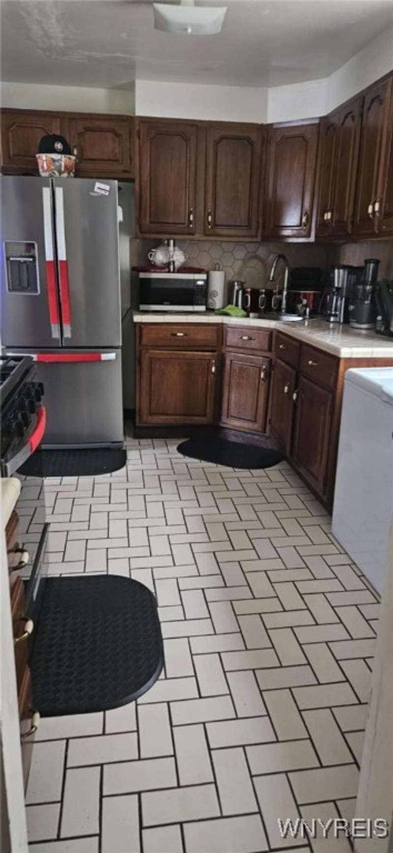 This well taken care of home features an updated bathroom and kitchen (2024) and new hot water tank and roof (2024). Other features are family room with skylights, central air, some newer plumbing, sliding doors to deck, full basement and fenced backyard. The 3rd floor has potential to be additional living space. Home has a long-term tenant.