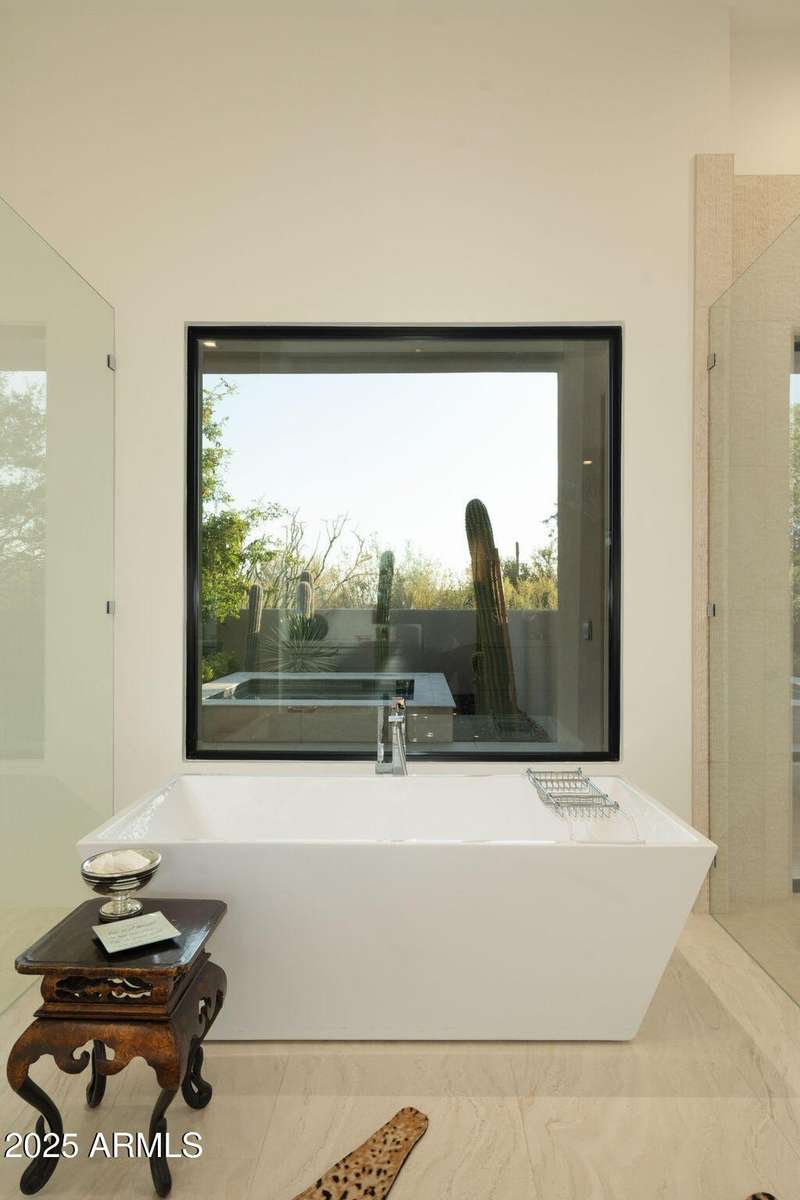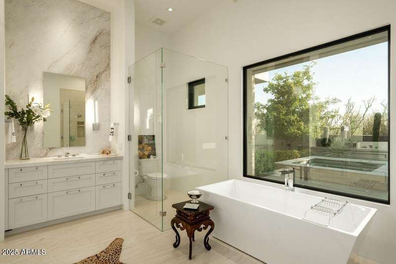 Nestled on 1.435 acres in the prestigious guard-gated community of Desert Highlands, this rare architectural masterpiece was envisioned by its owner and brought to life by renowned G&T Custom Homes. Blending modern sophistication with the natural beauty of the Sonoran landscape, walls of glass frame dramatic views of Pinnacle Peak, while sleek interiors, open living spaces, and refined finishes create a seamless balance of elegance and comfort. Designed for both intimate living and grand entertaining, the 4,829 sq ft residence offers three ensuite bedrooms in the main house, 3.5 baths, and a private casita with one bedroom, one bath, and a kitchenette. With effortless indoor-outdoor flow, the home is both an entertainer's dream and a private sanctuary, thoughtfully crafted to embrace the desert lifestyle. Within this exclusive community, residents enjoy immediate golf membership and access to the soon-to-reopen Jack Nicklaus Signature Golf Course, debuting mid-November after a complete redesign and restoration, along with brand-new women's locker rooms and a reimagined pro shop, further elevating the world-class Desert Highlands experience.