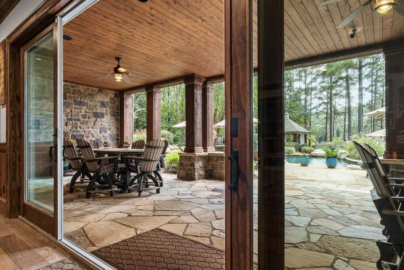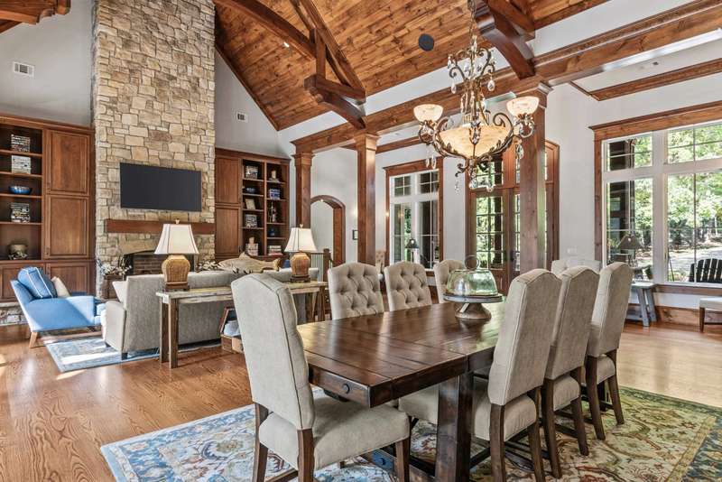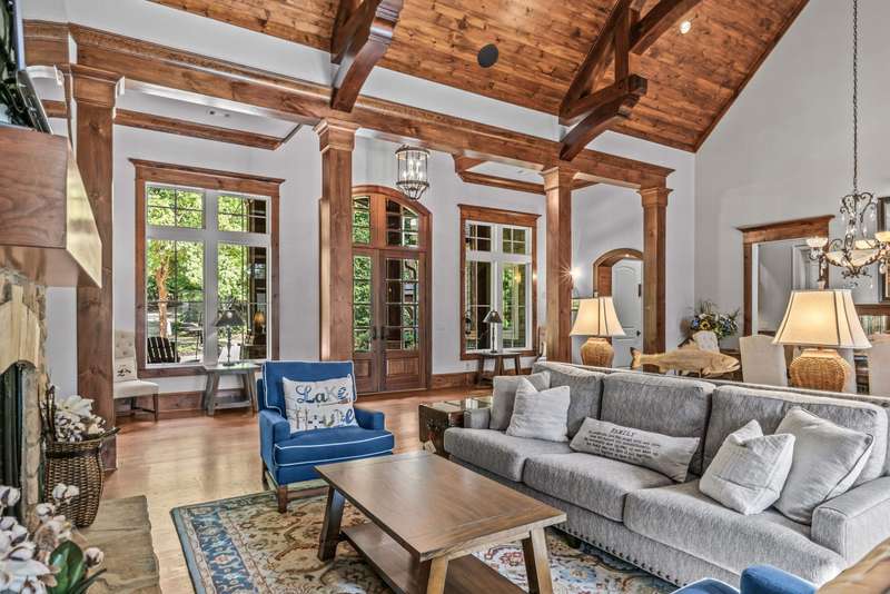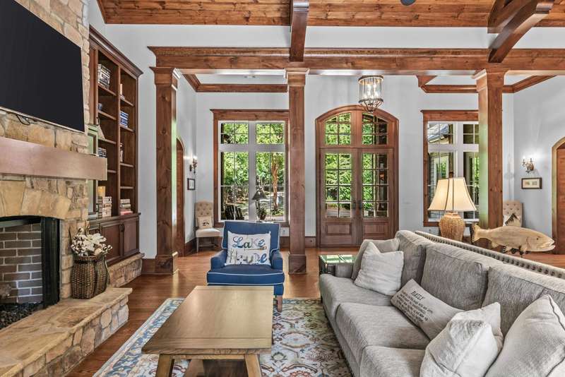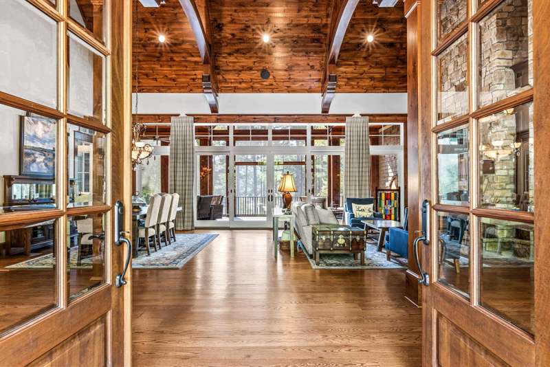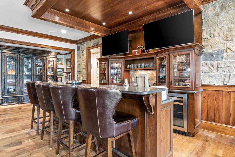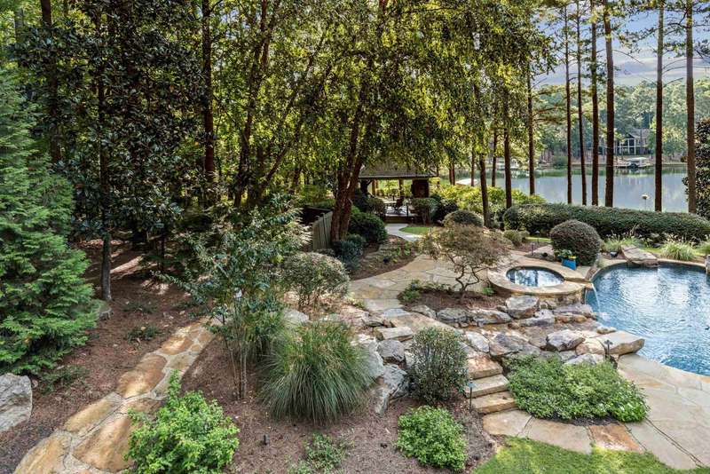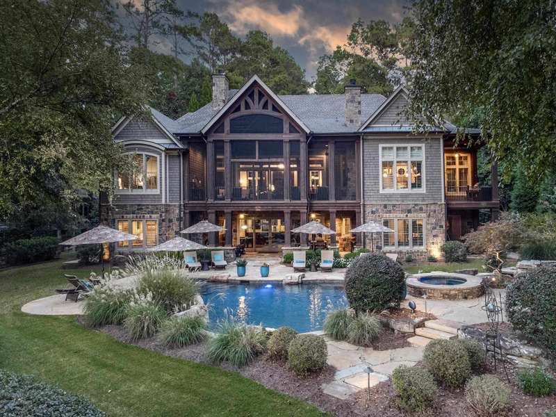 YOUR LAKE FRONT PARADISE at Parrotts Pointe neighborhood of Reynolds Lake Oconee, just minutes from the Ritz Carlton, Lake Club, and other world-class amenities. This custom-built estate offers over 7,000 square feet of thoughtfully designed living space, perfectly crafted for families and future generations to enjoy. As you arrive, the lush landscaping immediately sets the tone for the privacy and beauty this home offers. Upon entry, be greeted by soaring ceilings, a floor-to-ceiling stone fireplace, exposed wood beams, and an expansive screened porch overlooking the serene lake views. The spacious great room and dining area are perfect for gathering and entertaining, with an effortless flow that complements large family gatherings. The gourmet kitchen boasts high-end appliances, a generous island, custom cabinetry, and ample storage for those who love to cook together. Adjacent to the kitchen is a cozy sitting area with stone fireplace, a large breakfast nook, and a grilling deck with panoramic views of the resort-like backyard. For the ultimate convenience, a large laundry room also serving as butler’s pantry, and wine room are strategically placed nearby to enhance your entertaining experience. The main level also features a private office/craft room, a collector’s room, and a luxurious primary suite with lake views and a spa-like bath. The upper level offers a spacious apartment suite with its own living area, perfect for guests or multigenerational living. An elevator leads to the lower level, where you’ll discover an incredible pub lounge, inspired by an Irish pub, complete with a full bar, billiards room, and media space. The guest suites are generously sized, offering comfort and charm. The lower level also features a pool bath and powder room for convenience. Step outside to your own private resort oasis, featuring a stunning pool with stepping stones, a waterfall, tanning ledge, and lush gardens. A stone deck with another fireplace provides the perfect outdoor TV area, ideal for relaxing by the pool. For ultimate relaxation, enjoy the separate lakeside gazebo, equipped with a stone fireplace and space to dine or watch TV. A picturesque walkway, lined with azaleas, leads to your private boat dock with a jet ski deck, where you can launch out for a day on the lake. The beautiful conservatory/greenhouse with a path to a secret garden is the ultimate cherry on top for this estate. Membership is available.