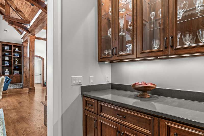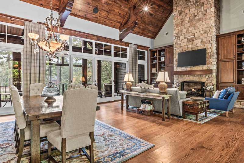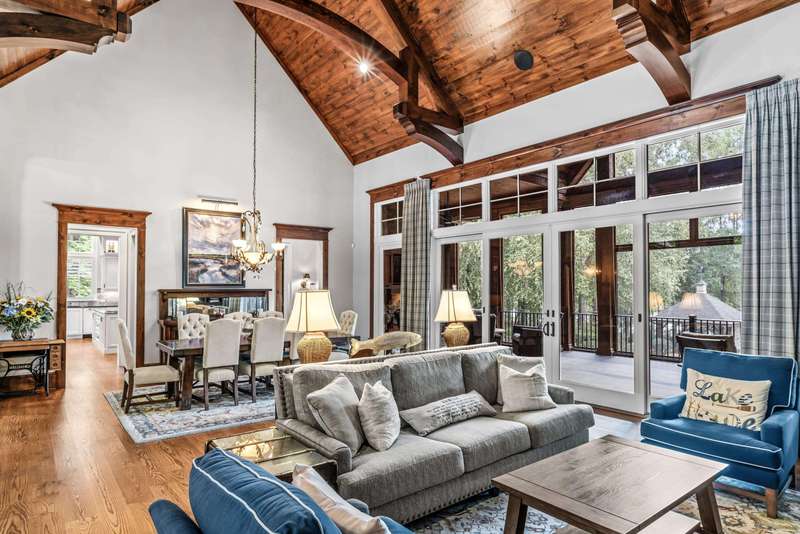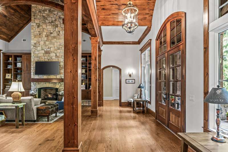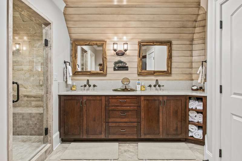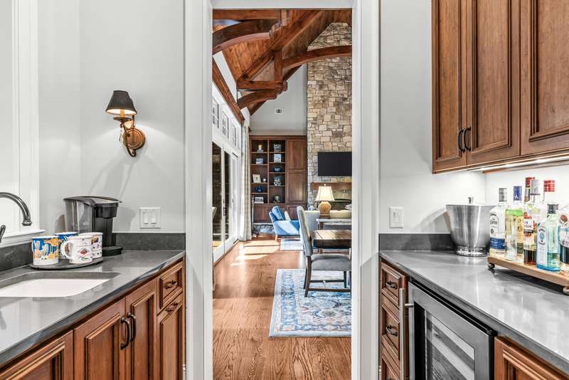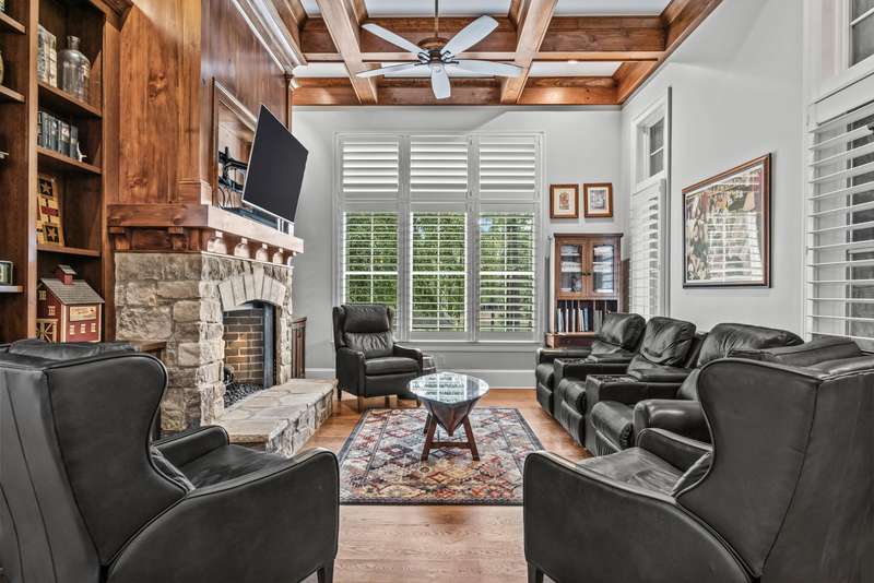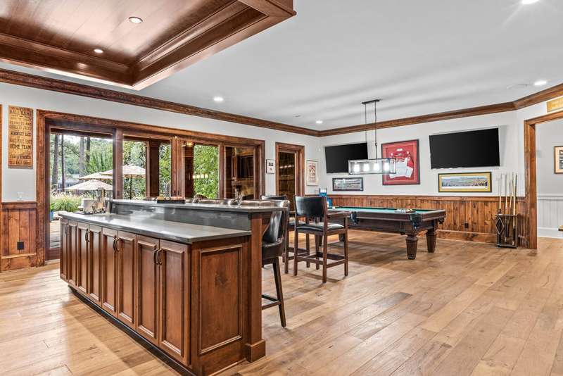 YOUR LAKE FRONT PARADISE at Parrotts Pointe neighborhood of Reynolds Lake Oconee, just minutes from the Ritz Carlton, Lake Club, and other world-class amenities. This custom-built estate offers over 7,000 square feet of thoughtfully designed living space, perfectly crafted for families and future generations to enjoy. As you arrive, the lush landscaping immediately sets the tone for the privacy and beauty this home offers. Upon entry, be greeted by soaring ceilings, a floor-to-ceiling stone fireplace, exposed wood beams, and an expansive screened porch overlooking the serene lake views. The spacious great room and dining area are perfect for gathering and entertaining, with an effortless flow that complements large family gatherings. The gourmet kitchen boasts high-end appliances, a generous island, custom cabinetry, and ample storage for those who love to cook together. Adjacent to the kitchen is a cozy sitting area with stone fireplace, a large breakfast nook, and a grilling deck with panoramic views of the resort-like backyard. For the ultimate convenience, a large laundry room also serving as butler’s pantry, and wine room are strategically placed nearby to enhance your entertaining experience. The main level also features a private office/craft room, a collector’s room, and a luxurious primary suite with lake views and a spa-like bath. The upper level offers a spacious apartment suite with its own living area, perfect for guests or multigenerational living. An elevator leads to the lower level, where you’ll discover an incredible pub lounge, inspired by an Irish pub, complete with a full bar, billiards room, and media space. The guest suites are generously sized, offering comfort and charm. The lower level also features a pool bath and powder room for convenience. Step outside to your own private resort oasis, featuring a stunning pool with stepping stones, a waterfall, tanning ledge, and lush gardens. A stone deck with another fireplace provides the perfect outdoor TV area, ideal for relaxing by the pool. For ultimate relaxation, enjoy the separate lakeside gazebo, equipped with a stone fireplace and space to dine or watch TV. A picturesque walkway, lined with azaleas, leads to your private boat dock with a jet ski deck, where you can launch out for a day on the lake. The beautiful conservatory/greenhouse with a path to a secret garden is the ultimate cherry on top for this estate. Membership is available.