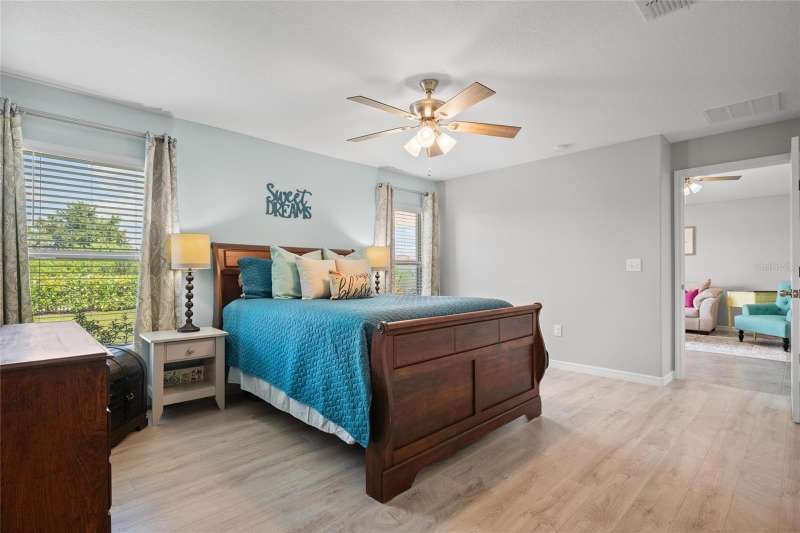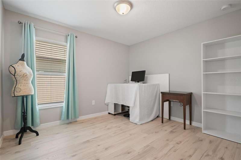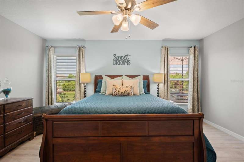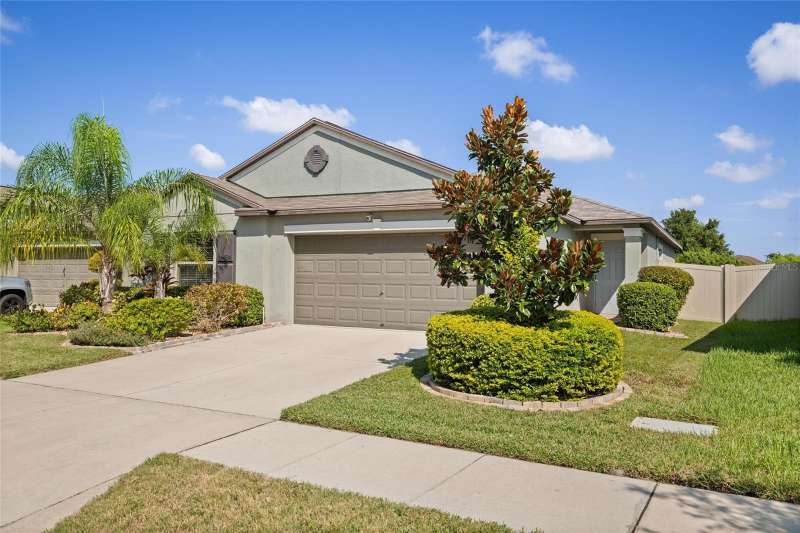 SELLER HEARD YOUR REQUEST - FRESH PAINT AND NO CARPET. Repainted primary suite, primary bath, office, craft room and laundry. Newly installed 12mm thick Durable Waterproof Laminate in all bedrooms. This home is IMMACULATE, sparkling clean, is only 5 years old but the care and attention makes it feel brand new! Skip the new build and have a move in ready home in an established neighborhood of Belmont! No loud construction or additional CDD increases. Other recent upgrades include, new faucets in both bathrooms, new garbage disposal, new paint, high end laminate floors in all bedrooms, and tile throughout the home. This is a Lennar - Harrisburg Model, 4 bedrooms, 2 bathrooms just over 1800 square feet. Highlights include, 2-car garage, tankless-gas hot water heater, indoor laundry room, fenced in back yard, ring door bell and front security cameral included. This home is situated on a peaceful preserve and water-view lot with convenient walking trail. The kitchen boasts a gas range, walk-in pantry, and an elegant beveled Grecian marble backsplash with a huge island for cooking and entertaining. This vinyl fenced in backyard feels like your own oasis, meticulously manicured with a private patio, added lush tropical plants + a view that can’t be beat, feels very private with a beautiful backdrop of the preserve. Location Perks, less than 5 miles to grocery stores, shopping, and I-75, Apollo Beach is under 5 minutes away, Tampa is only 25 minutes, & Award-winning beaches like Anna Maria, St. Pete Beach, and Clearwater are within an hour. Belmont Community Amenities include, Two pools (lap pool and resort-style walk-in pool), Basketball and tennis courts, Playgrounds, Walking and bike trails, On-site Belmont Elementary School, Community events, holiday parties, and more. The HOA is just $165 annually, covering all these incredible amenities. Whether you're relaxing at home, enjoying the vibrant neighborhood, or exploring nearby beaches, this home offers the lifestyle you've been dreaming of. Don’t wait—make it yours today!