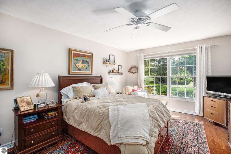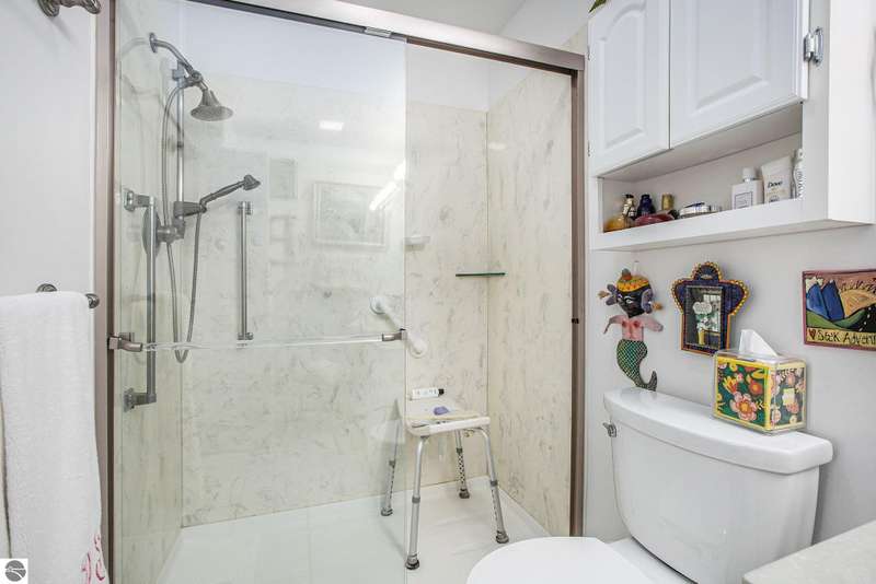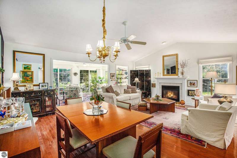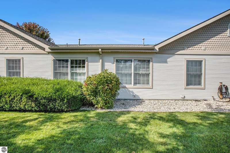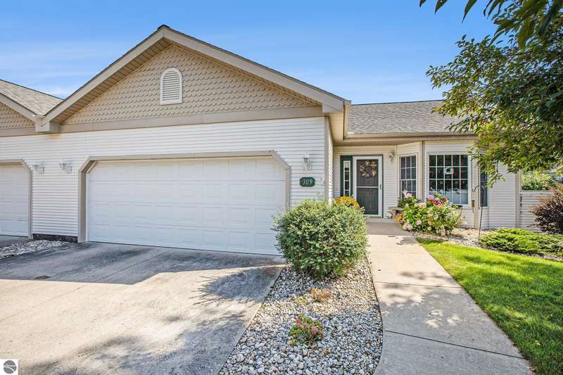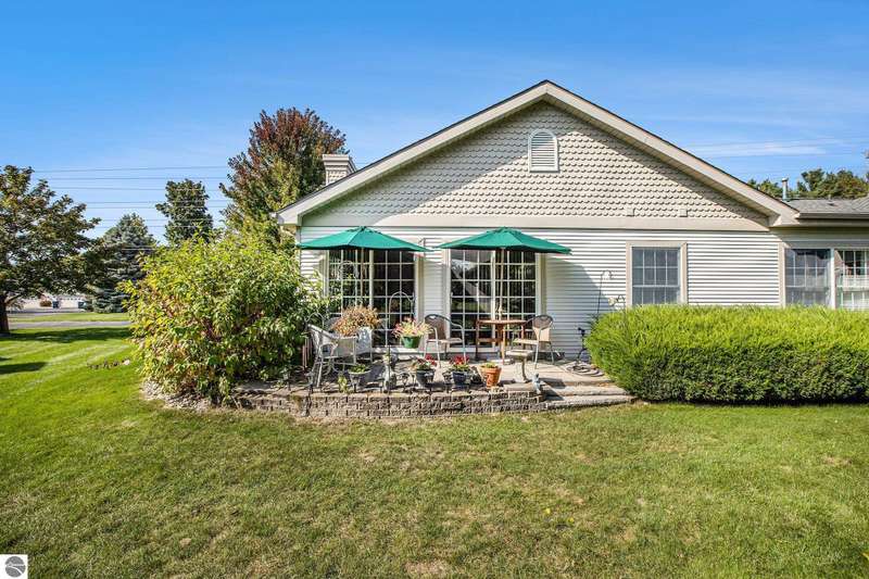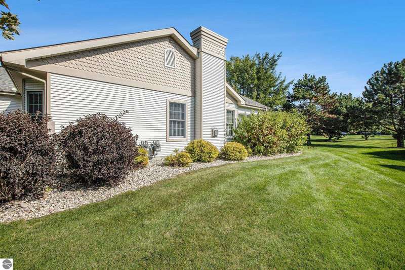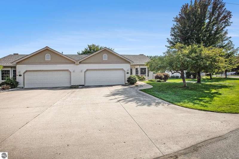 Experience comfortable living in the center of Elk Rapids. This attractive 2-bedroom, 2-bath condo in Meadowview Commons provides all you need on one level, featuring walk-in showers, a cozy sunroom, and a generous 2-car garage. It offers an excellent combination of comfort and accessibility, located just one mile from downtown shops and dining options. The golf course is conveniently situated across the street, and the new library will be a short walk away thanks to the sidewalks being developed. The condo comes with durable countertops, a gas fireplace, and a secluded patio with views of the green area. If you envision a low-maintenance lifestyle with the charm of a small town, this is your opportunity to experience the best that Elk Rapids has to offer.