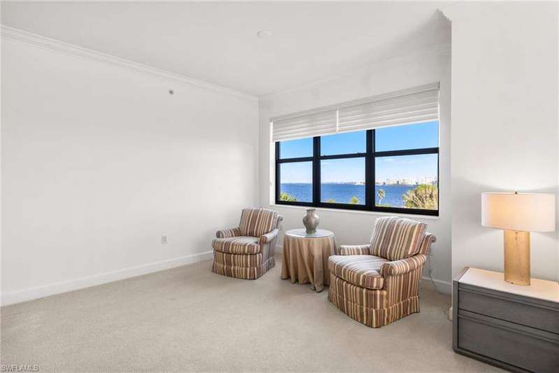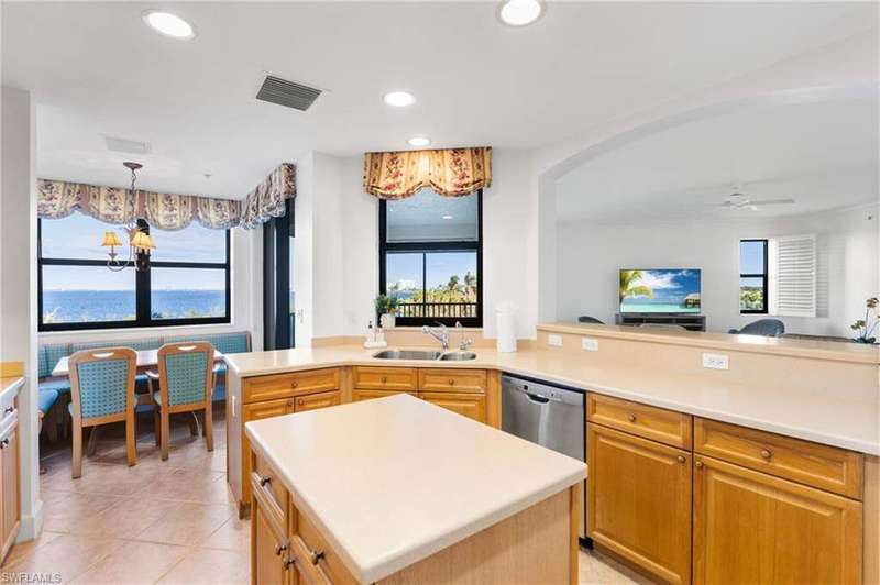 FREE Golf Cart Included! | Palmas Del Sol in Gulf Harbour Unobstructed River Views | Sports Membership Fee Temporarily Reduced by $32,000 Step into elegance at Palmas Del Sol, one of Gulf Harbour Yacht & Country Club's most coveted high-rise communities. This furnished 4th-floor residence offers 2 bedrooms + den/office, 2.5 baths, and over 2,550 sq. ft. of luxurious living space, along with a rare 2-car under-building enclosed garage. With no neighboring building, enjoy unmatched privacy and unobstructed views of the Caloosahatchee River, lake, and 3rd fairway from nearly every room. Highlights: Expansive Primary Suite - River, lake, and golf course views, sitting area, spa-inspired ensuite with dual vanities, walk-in shower, soaking tub, and walk-in closet. Chef's Kitchen - Central island, stylish backsplash, breakfast nook with river views, plus dual pass-throughs to both lanai and living room for effortless entertaining. Living & Dining - Formal dining room, spacious living area, and lanai-all with breathtaking water and golf views. Guest Spaces - Nicely sized second bedroom with walk-in closet, plus a den/office with fairway and lake views. Peace of Mind - Hurricane protection, new roofs, fresh exterior paint, updated garage finishes, and new screens-all fully funded and covered by insurance. Resort-Style Amenities: Exclusive Palmas Del Sol pool, spa, BBQ area, and elegant community clubhouse with conference room, billiards, library, lounge, and catering kitchen-perfect for gatherings up to 100 guests. Gulf Harbour Lifestyle - World-class 186-slip marina (38'-100' slips), private championship golf, and immediate membership availability (full golf or sport). Bonus: A golf cart is included with purchase, making it easy to enjoy all Gulf Harbour has to offer. This condo combines comfort, luxury, and one of the most spectacular views in Gulf Harbour. Don't miss your chance to own this private oasis!