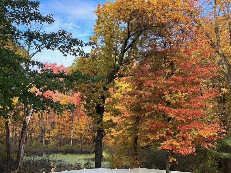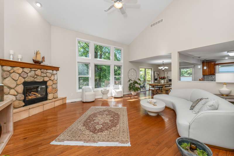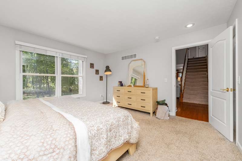 Come discover the perfect balance between home and property at 4752 Forest Creek. The current owners have thoughtfully elevated an already well-crafted home with a host of meaningful updates. Recent improvements include a radon system for peace of mind, a new hot water heater (2022), an updated sump pump, a new furnace igniter for improved efficiency, and exterior lights at the garage and front entrance. Additional enhancements include staircase motion lighting, new carpet on the upper level and stairs, and brand-new kitchen appliances, washer, and dryer. Outside, the deck and stairs have been stabilized and painted, while tree removal has eliminated safety concerns. Landscaping upgrades include pea gravel surrounding much of the home, a charming rose garden with wishing well, and the addition of cherry and apple trees. A professional lawn service has meticulously maintained the yard and gardens, and the exterior of the home has been professionally soft washed on a regular basis. All these enhance the stunning fenced-in lot, which backup to privately owned wooded acreage. From the curb, the home makes a striking impression in this scenic neighborhood. Step inside, and you'll be greeted by expansive windows framing a beautiful seasonal backyard with views of a large pond beyond the fence line. The great room's soaring ceilings, wood floors, and stone fireplace create a warm, inviting retreat. The open floor plan flows seamlessly into the dining area with sliders to the expansive deck and the kitchen, showcasing raised-panel cherry cabinetry, a snack bar, and quartz counters. The main floor primary suite is ideal, featuring a double-sink vanity, jetted tub, separate shower, and walk-in closet. Completing the main floor are a laundry room, mudroom, and half bath, with the garage offering a new opener and updated lighting. Upstairs, you'll find two additional bedrooms each with walk-in closets and a family bath with dual sinks. The walkout lower level adds even more living space, including a spacious family room, two additional bedrooms, and a third full bath. Don't miss the chance to make this beautifully maintained and thoughtfully updated home yours.