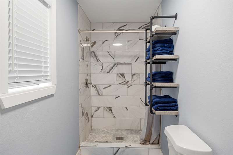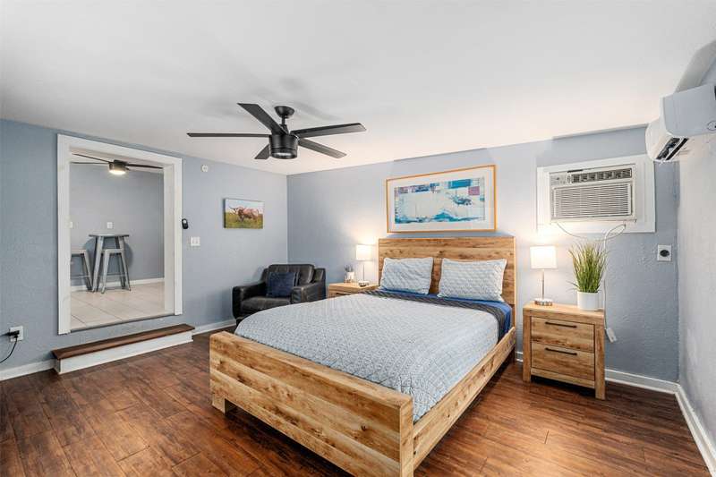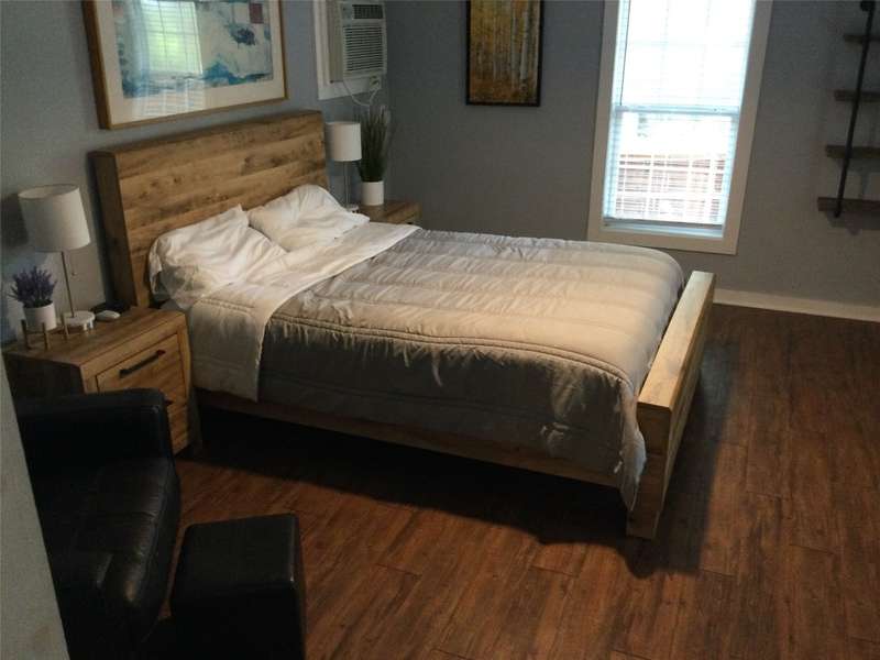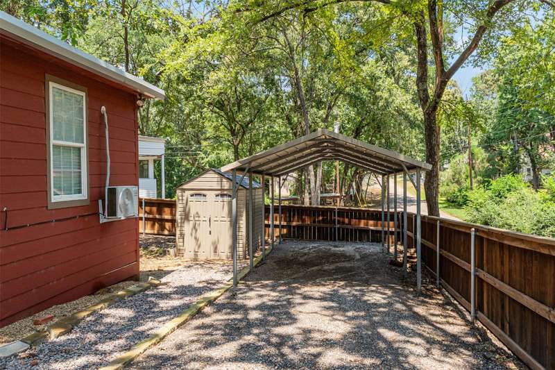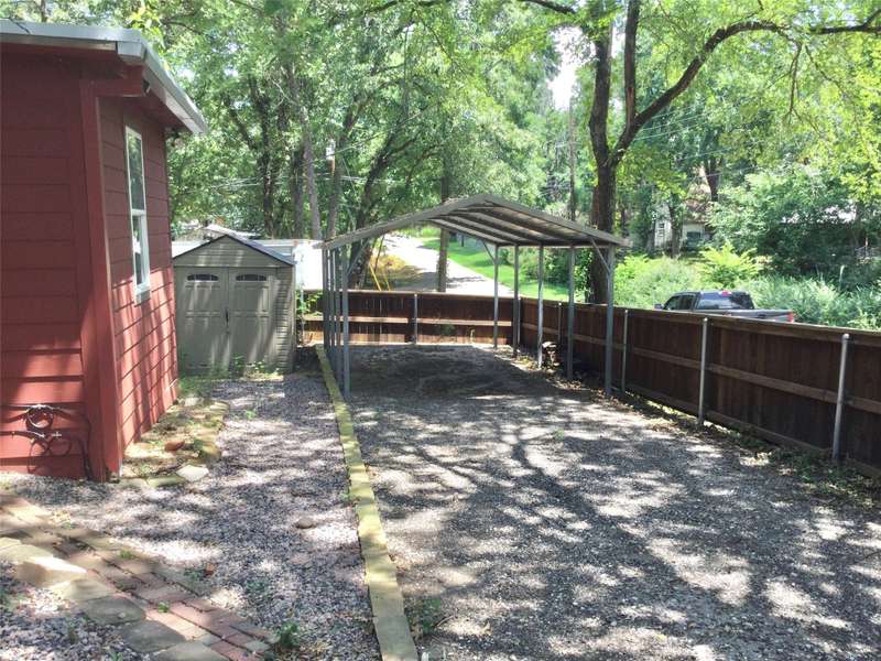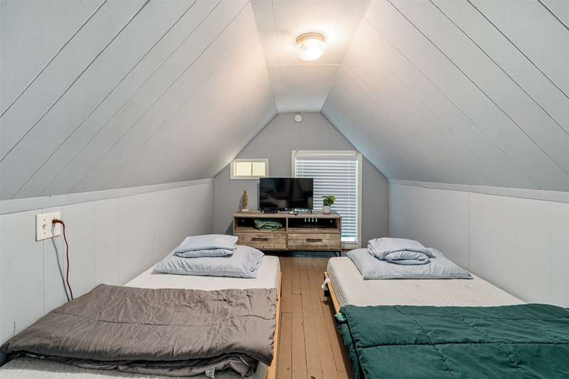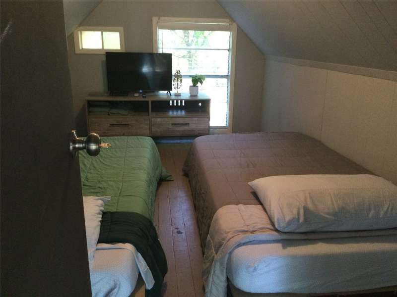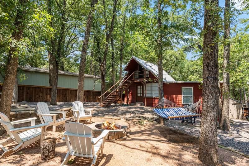 Cute and cozy Cabin currently being used as a short term rental . With the updated modern features in this quaint property its the perfect property to use as a week end get away or continue as a short term rental..The large out door space with private fence allows for get togethers or taking in the quiet park like space and enjoy nature. Included on the property is a one car car port and storage building... The indoor features a large bedroom ,kitchen and dining and bath..updated to the modern style. The second bedroom is entered from the outside and on the second floor as a loft style bedroom. Property is rented frequently and could also be rented long term. Located close to the lake, boat ramp access in the neighborhood is available.