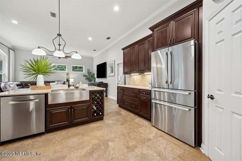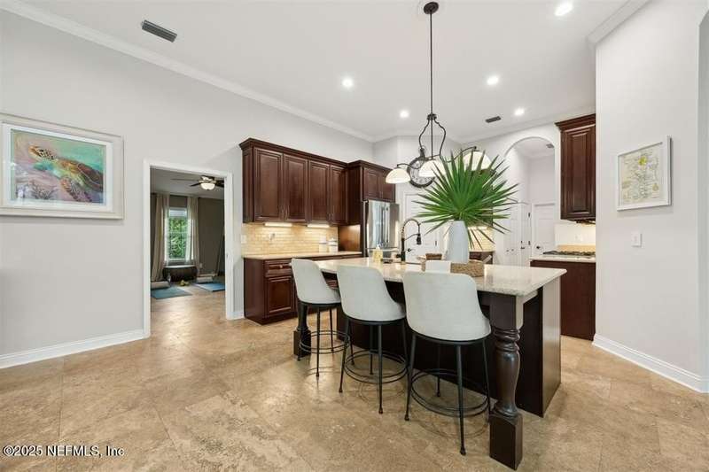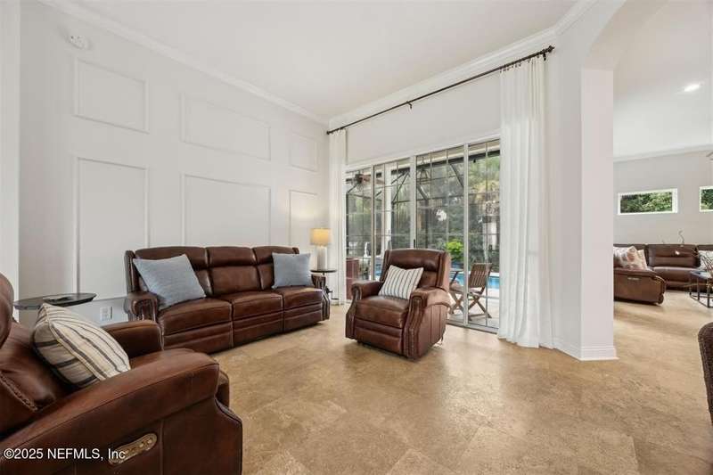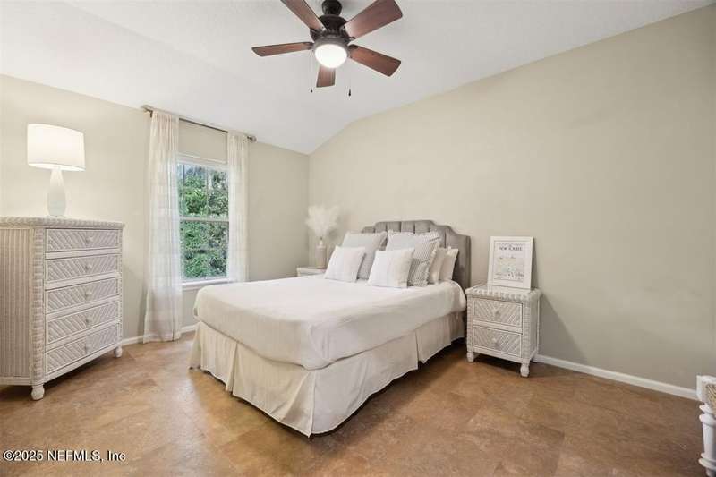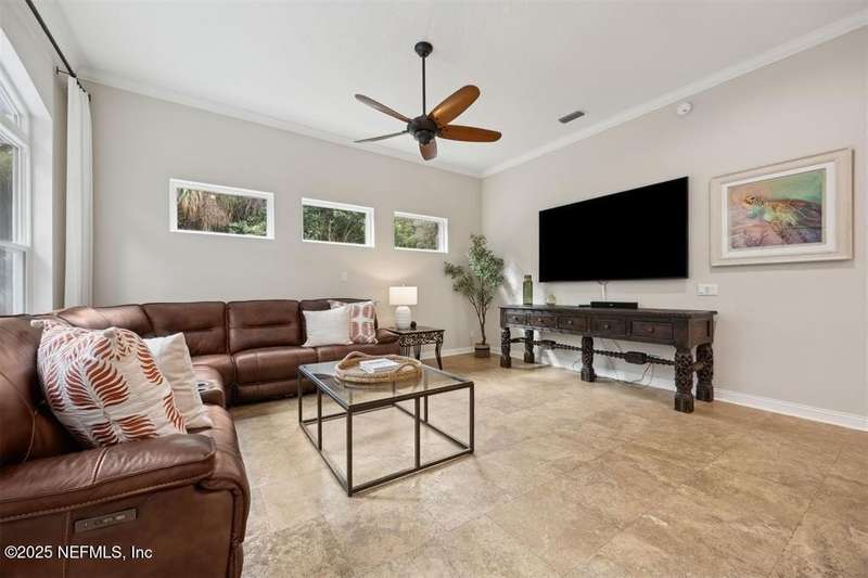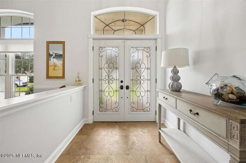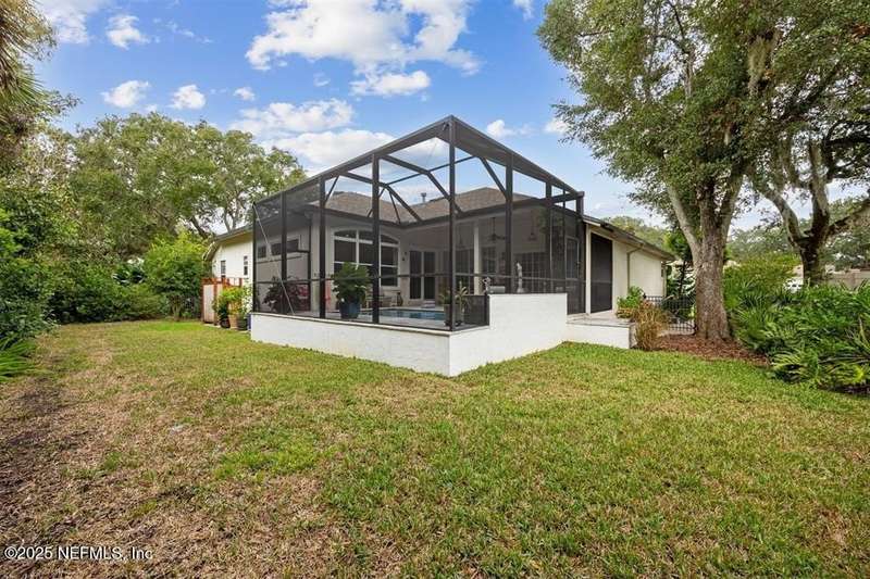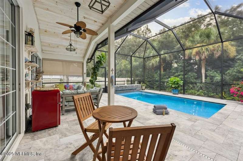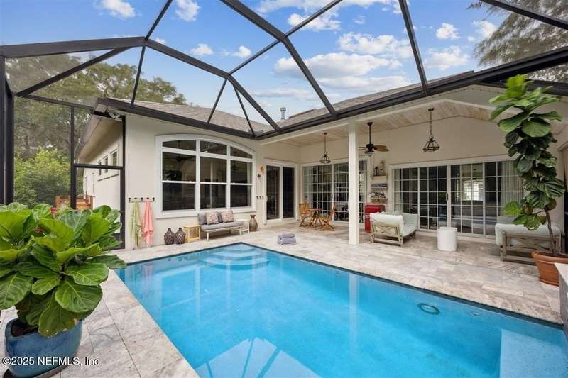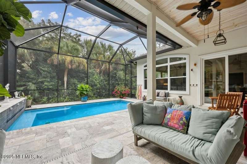 Coastal charm meets modern comfort just three blocks from the beach in Ocean Oaks! Step through new double front doors into this beautifully renovated 3BR/2BA, 2,322 sq. ft. home featuring an open split floor plan, travertine & porcelain tile flooring, custom kitchen with 2023 stainless appliances, and new Pella windows. Enjoy upgrades like a 2024 tankless gas water heater and treated, sealed attic for energy efficiency. The fenced backyard oasis includes a heated saltwater pool with waterfall (2022), extended screened lanai (2023) with tongue-and-groove ceiling, gas pool equipment, and heated outdoor shower. Brick paver driveway, epoxy garage, and irrigation system add ease. Walk to Beach Access 9, Egan's Creek, and nearby shops and dining!