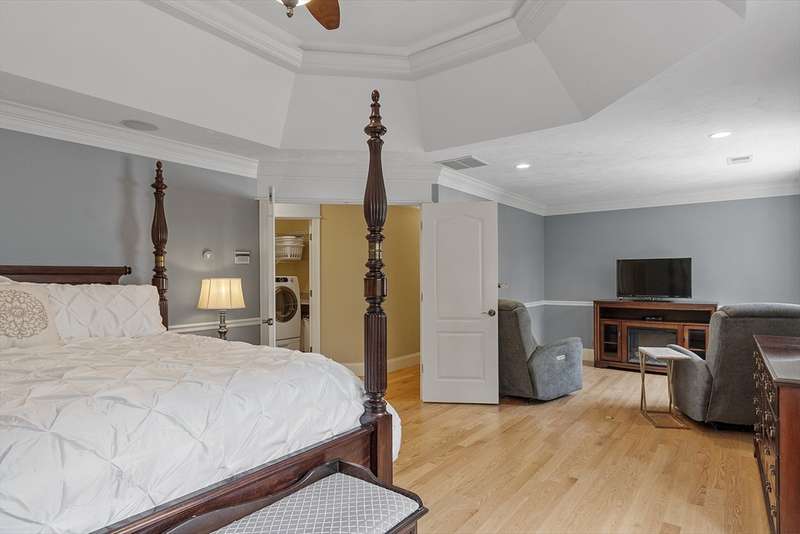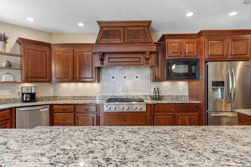 Welcome to Magnolia Farm! This exceptional home sits on a large, flat acre lot and offers 4 full baths, a spacious open foyer, and a front-to-back living and dining room perfect for entertaining. The heart of the home is a large open kitchen flowing seamlessly into a cathedral-ceiling family room with a dramatic wood-burning fireplace and stunning walls of glass, creating a bright and inviting atmosphere. A private first-floor office provides the ideal work-from-home retreat. Additional highlights include two separate stairways, a recently remodeled spa-like primary bath, and a fully finished lower level with flexible space for recreation, fitness, media, or guests. Spacious bedrooms add comfort and versatility. A three-car garage offers ample storage and parking, while the expansive lot provides spacious outdoor space for play, gardening, or entertaining. With its open design, modern updates, and premier location in Magnolia Farm, this home is truly move-in ready and impressive.