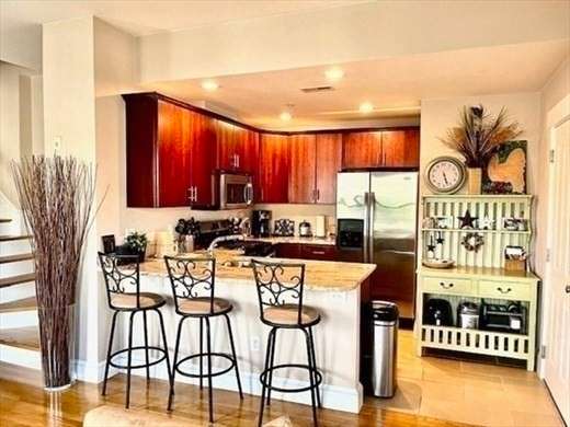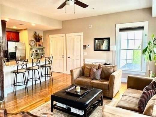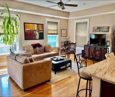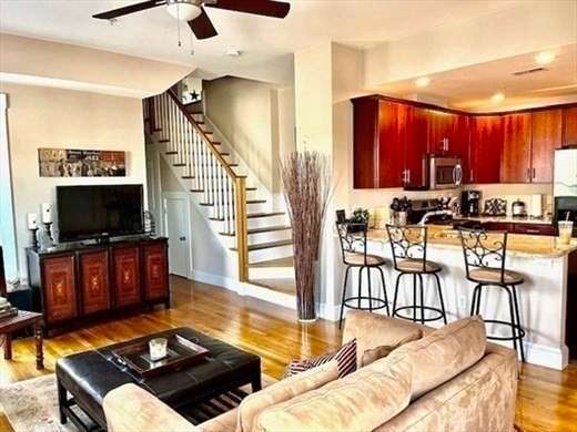 121 E Cottage St #4, Boston is a gorgeous 2 Bed 1 Bath condo with 2 Deeded Parking Spaces, Separate Deeded Storage area situated in a professionally managed pet-friendly building. The living room is an inviting centerpiece, showcasing a tray & vaulted ceiling, creating an atmosphere of spacious architectural interest. The unique ceiling design & recessed lighting enhances the overall ambiance. Kitchen is equipped with a granite peninsula, providing ample space for meal preparation & casual dining. 2 generous-sized bedrooms offer flexibility for a guest room or home office. One of the bedrooms features a skylight, inviting natural light to pour into the space. Enjoy year-round comfort with central air, heat & the ease of in-unit laundry. Additional perks: a serene outdoor common area. Perfectly situated in a great location near South Boston, South Bay Mall, dining, shops and a quick drive to UMass, JFK Library & Beaches. Near buses, trains & easy highway access. Furniture Negotiable