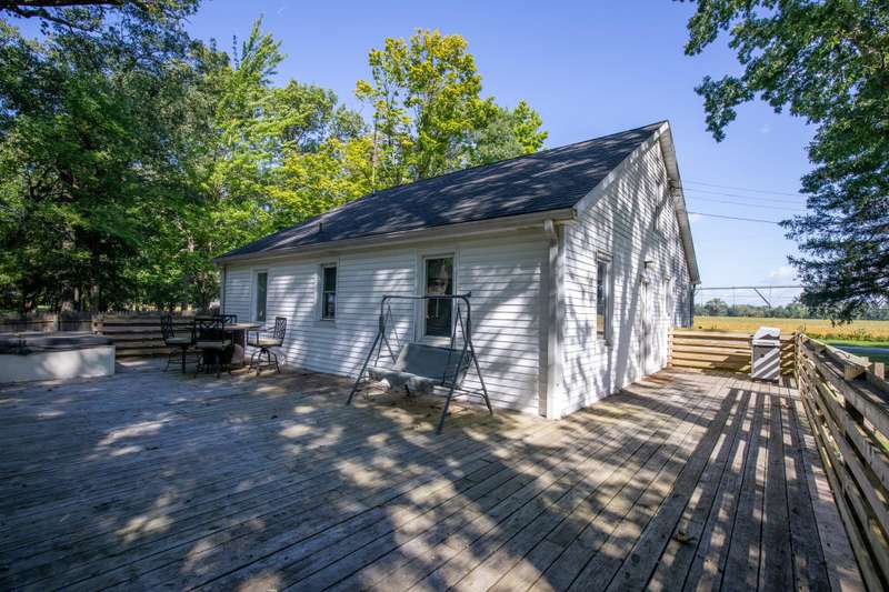 Discover peaceful country living in this beautifully remodeled 3-bedroom, 2-bath home set on a picturesque 1.53-acre lot surrounded by woods and farmland. Updated in 2015, this home features a spacious 2.5-car garage, a fenced yard, and a huge deck with a relaxing hot tub--perfect for entertaining or unwinding under the stars. Inside, the main level boasts stunning hardwood floors, a fully remodeled kitchen with soft-close cabinets, granite countertops, subway tile backsplash, and brand-new appliances. The finished basement with egress window adds valuable living space, while recent upgrades include a new furnace, central air conditioning, and updated electrical. Whether you're enjoying quiet mornings on the deck or exploring your wooded backyard, this serene retreat offers the best of country charm with modern comfort.