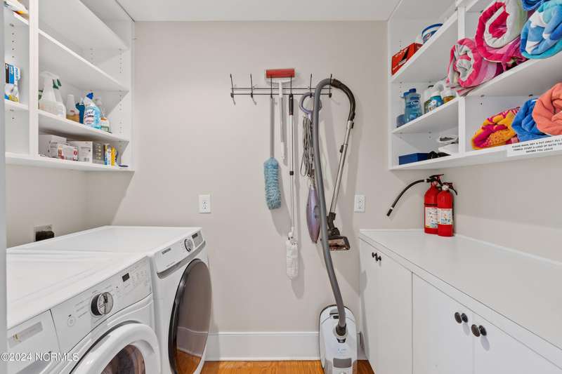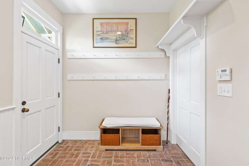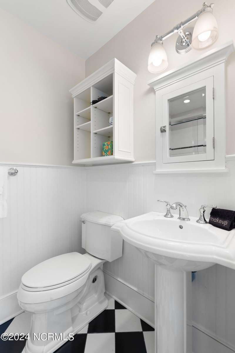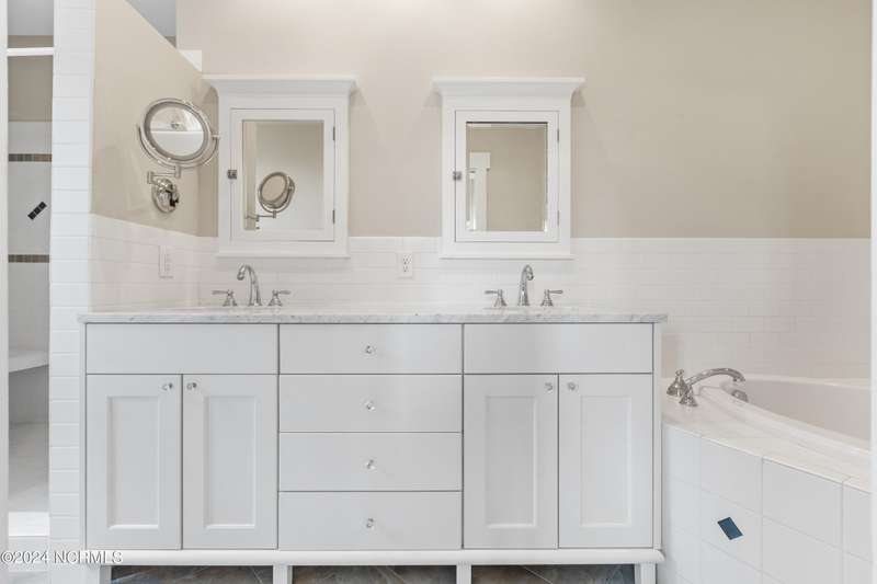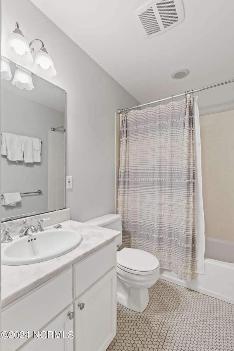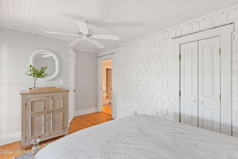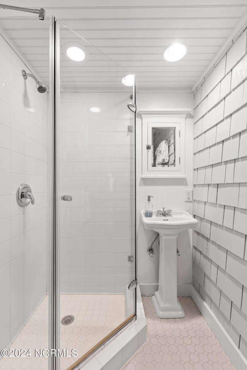 Overlooking Bald Head's estuary, with views of the Atlantic, this 6BR, 6.5BA reverse floorplan's warm hardwoods lead to a comfortable TV/living area across from a dinette. Wake to treats from the nearby coffee station with wet bar and mini fridge. Down the hall, a sunlit Queen suite grants marsh perspectives, accesses a screened porch housing a ping pong table and furnishes an ensuite BA. Next door, a bunk room also bestows BHI Creek scenes and uses the hall bath with tub. Nearby, a large, bright Twin suite, cornered by windows, harbors another full bath. Down the hall, a sundrenched corner Queen suite brings the outdoors in with its three sides of windows and indulges with a private bath. A laundry finishes this level. Upstairs, the natural light-filled, vaulted open floor plan showcases estuary panoramas and ocean vistas through its wall of French doors. The spacious wainscoted living area is anchored by a gas fireplace and opens to both a covered outdoor conversation space and a sunny lounging and dining deck. Savor alfresco meals observing egrets and watching the waves. Or dine at the elegant indoor table with places for ten and four more at the adjacent breakfast bar. The gourmet kitchen boasts yards of granite bar space, butcher block counters, stainless appliances and an oversize walk-in pantry. On each end of this floor is a Primary suite. The first tenders an ante chamber that can be closed off from the bedroom-proffering an additional gathering spot for all or closed to become a private sitting area. This sunlit Primary Queen shares marsh tableaus from three sides and a pampering bath with a sunken tub, benched shower and double vanity. The Primary King spotlights estuary and ocean prospects, accesses the covered deck and has a private full bath. Located on exclusive Middle Island, this well cared for, tastefully appointed sanctuary boasts a great rental history and conveys with three carts. Club memberships are available for separate purchase.
