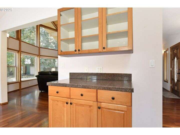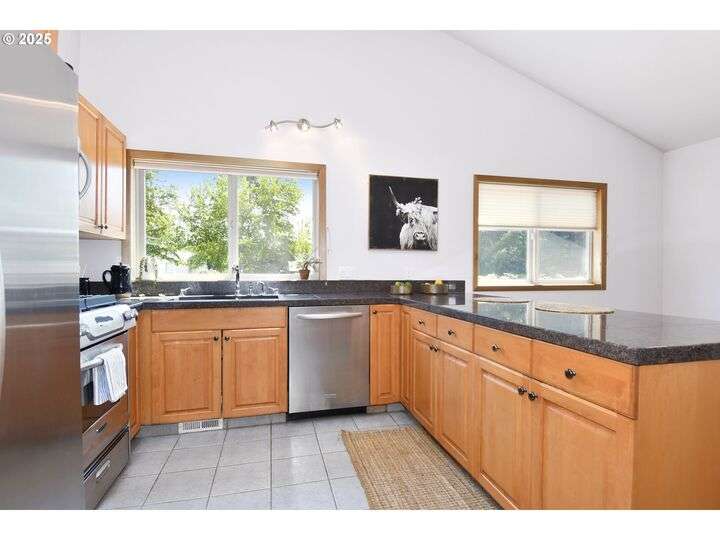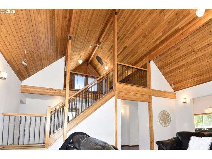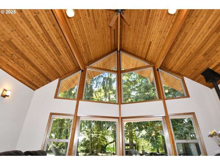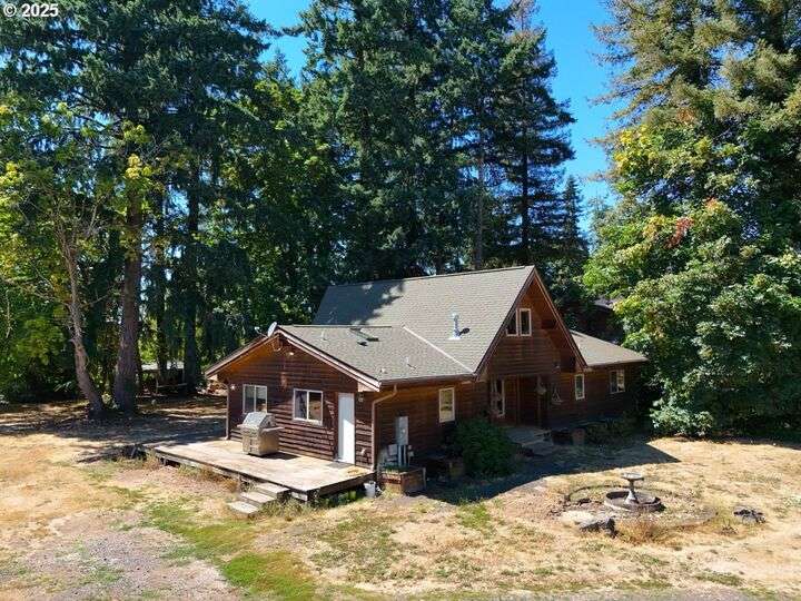 Price Improvement! Modern country living in the heart of Oregon Wine Country! Private 2.5 acre oasis. This striking custom home offers stunning NW architecture with vaulted cedar ceilings, rich wood floors, and a dramatic wall of windows that flood the space with natural light. A spacious open-concept great room and upper loft create an airy, inviting atmosphere surrounded by forested privacy. The home is riverfront, with deeded access to the water via an established trail — currently overgrown and in need of clearing, but offering exciting potential for private river enjoyment. While the river is not visible from the house, it adds to the tranquil setting and future value. Wrap around decking, usable pasture space, and a peaceful wooded backdrop complete the setting — ideal for gardening, livestock, or simply room to roam.