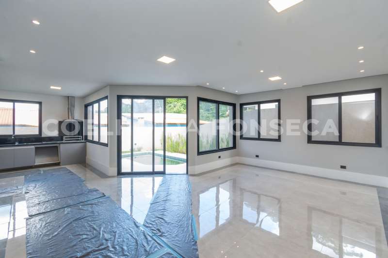 Linda casa nova e térrea no Valville 2, com 4 suítes, piscina, área gourmet integrada à sala e 4 vagas de garagem, sendo 2 cobertas.