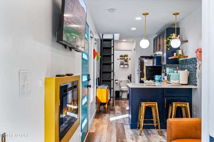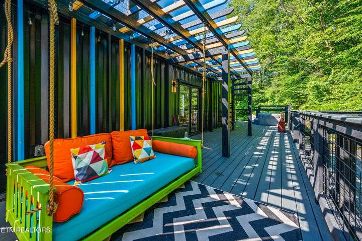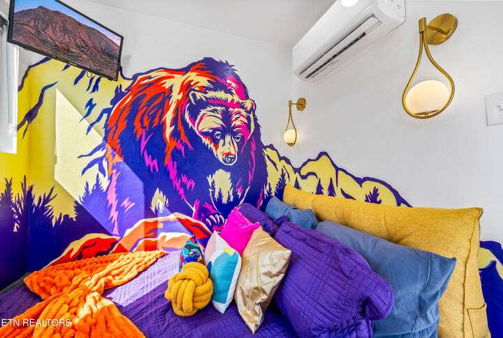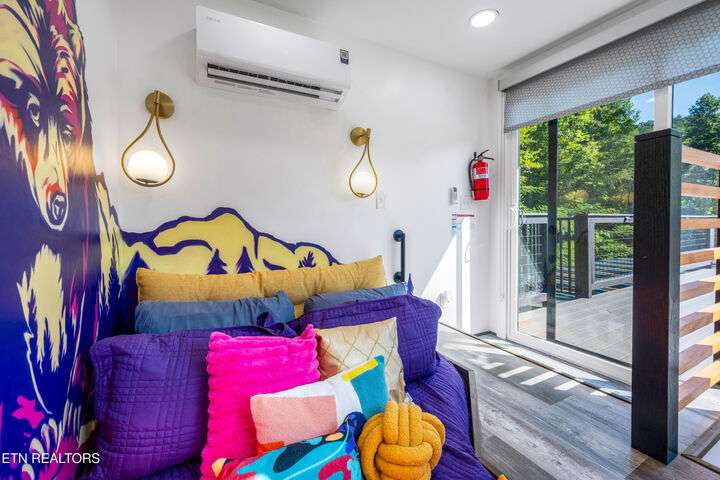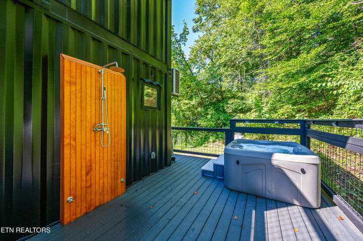 UNIQUE AND UNFORGETTABLE = REVENUE IN THE SMOKIES!! FIVE MINUTES to GSMNP and in SEVIER COUNTY! Welcome to ''The Bruin Bin'', a one-of-a-kind, one bedroom plus loft, CONTAINER cabin retreat, designed for those craving both style and soul. Tucked away just minutes from Gatlinburg, Douglas Lake, and the trails of the Great Smoky Mountains National Park, this custom-built getaway is more than a cabin-it's an experience. Packed with thoughtfully added design detail in this tiny dynamo, this retreat is sure to create the perfect romantic escape: *Retro-modern kitchen with navy cabinetry, gold hardware, mint appliances, and even a record player * Mid-century style bedroom with large windows, a plush queen bed, and just the right vibe for cozy nights in *Lofted sunken bed (loft area is not included in square footage but adds additional space) with private rooftop deck access, ideal for stargazing and moonlit conversations *Design-forward spiral staircase also allows access to the rooftop patio from the lower deck *Spa-inspired bathroom with rainfall shower and luxe finishes *Outdoor swing bed for morning coffee or sunset wine under the trees *Private Outdoor shower and hot tub for the ultimate back to nature retreat *Mini golf and corn hole for fun on the front lawn. From the cozy fireplace, hand-picked local art and custom mural, you'll see right away this is no ordinary property! The Smokies are one of the top honeymoon destinations in the U.S., and this cabin has everything your guests are looking for in a short-term rental--style, intimacy, and an unforgettable setting. And when it's time to explore, you're only 5-6 minutes from the Cosby entrance of the Great Smoky Mountains National Park with its hiking trails and waterfalls. Gatlinburg and all the tourist attractions are a short drive away on easy, paved roads. Best of all, this delight is being sold fully furnished and turnkey. The hard work is already done--the sellers navigated all the red tape, secured full permitting, passed inspections, and created a rare, regulation-approved container home in the Smokies. Now it's ready for you to step in and make it a standout short-term rental investment or your own personal retreat. PLEASE NOTE: This property is an active rental, please do not drive up or approach without a licensed realtor and scheduled appointment.