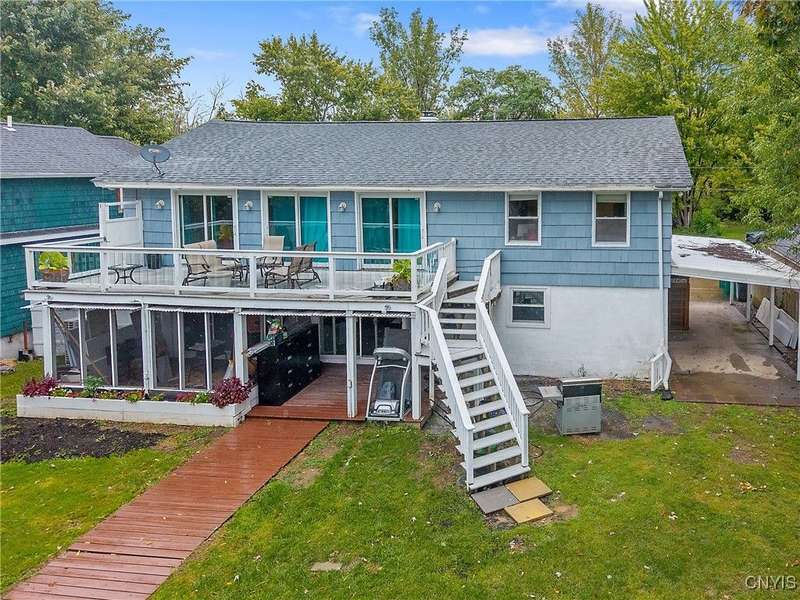Amazing Waterfront Opportunity on the Seneca River?2-Family Home in Baldwinsville! Whether you're looking for a stunning owner-occupied residence, a smart investment property, or the perfect blend of both ?this rare waterfront gem has it all! Nestled on the scenic Seneca River, this beautifully renovated 2-family home offers unmatched views, flexible living space, & exceptional outdoor amenities. The lower level has been completely renovated to the studs ?everything is brand new including flooring, ceilings, drywall, plumbing, electrical, bathrooms & kitchen! Enjoy single-level living w/ an updated front porch entry. The spacious living room features sliders leading to your private screened-in room, where you can unwind w/ breathtaking views of the river & watch eagles fish across the "forever wild" protected shoreline. The oversized kitchen offers new cabinetry, laundry hookups & plenty of workspace. 2 bedrooms, including a primary suite w/ private full bath & a 2nd bedroom w/ attached half bath, make for a comfortable & flexible layout. Outside, enjoy a large deck, beautifully landscaped yard w/ a firepit & a shed/boathouse w/ 220 power. The carport & 2 separate driveways offer abundant parking. Upstairs, step into a light-filled retreat featuring vaulted cathedral ceilings, a cozy gas fireplace & an open-concept great room. The renovated kitchen boasts granite countertops, skylights, a new double oven & gas range & flows seamlessly into the dining area?perfect for entertaining. Step out onto your expansive 40-foot balcony & take in the stunning waterfront views. 2 spacious bedrooms & 2 full baths include a completely remodeled primary suite w/ luxury finishes & scenic vistas. The crown jewel of the property is the 60-foot waterfront deck/dock, offering deep water access ideal for boating, kayaking, paddle-boarding, fishing or just soaking in the beauty of riverfront living. All this, just minutes from shopping, dining, parks & all the conveniences of Baldwinsville. Whether you're looking to generate income, accommodate extended family, or simply enjoy the serenity & lifestyle of waterfront living, this versatile, move-in-ready property is a rare find.