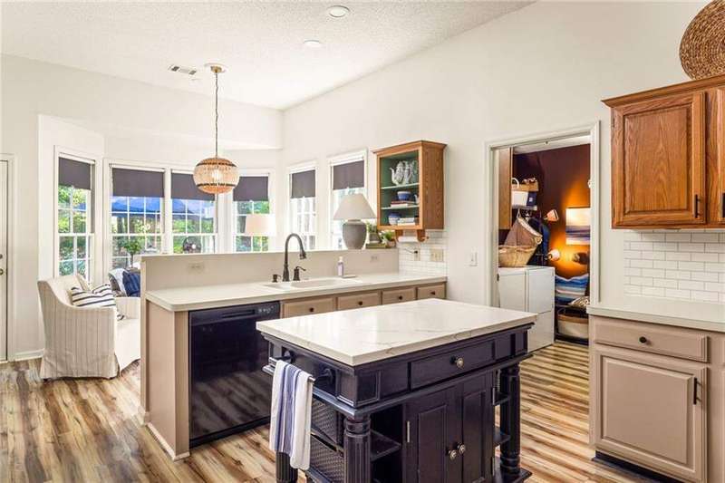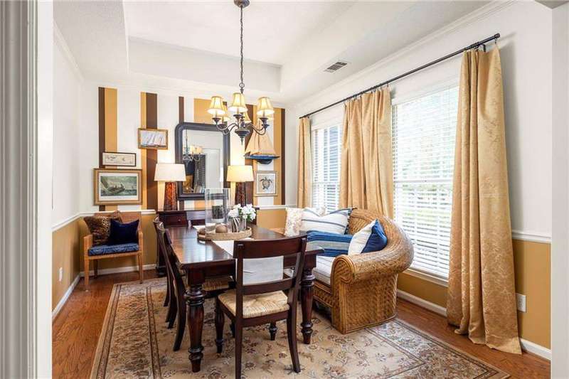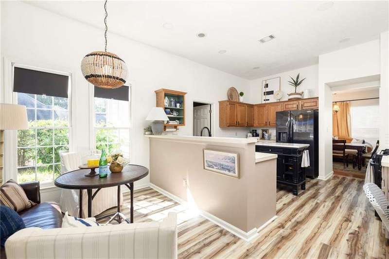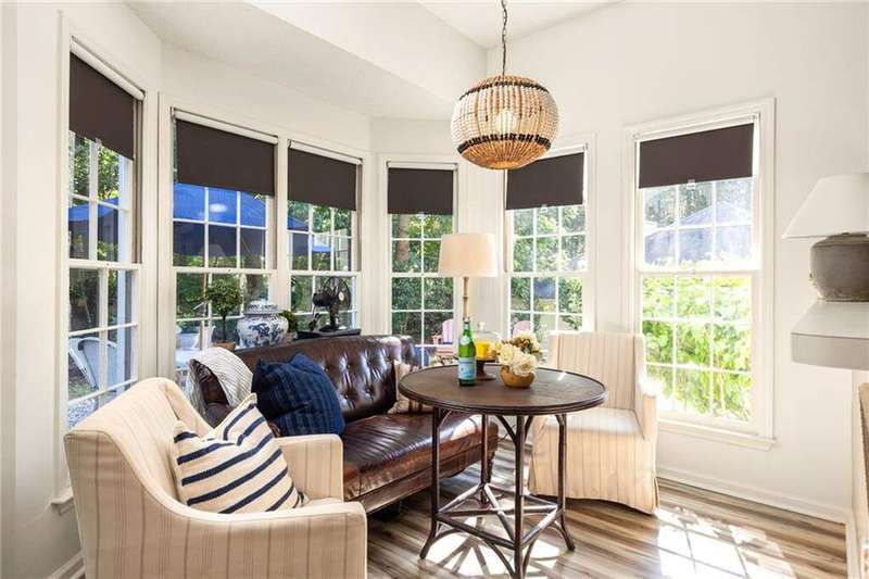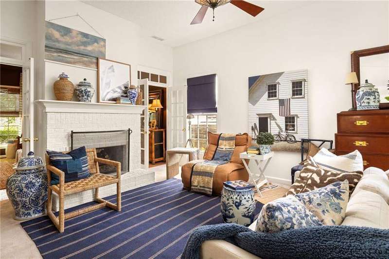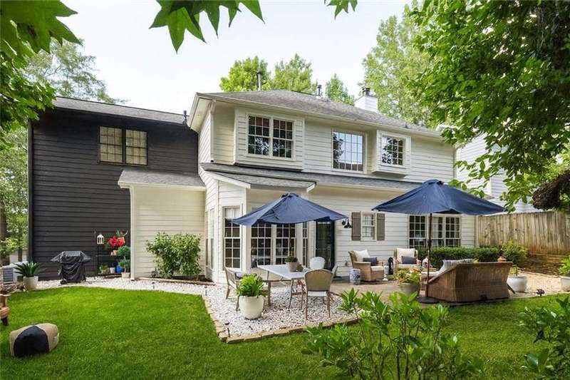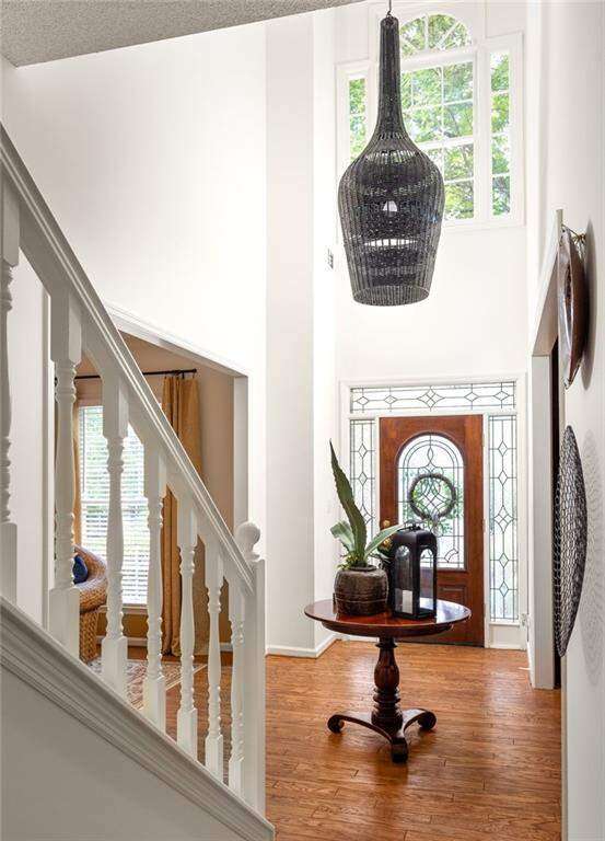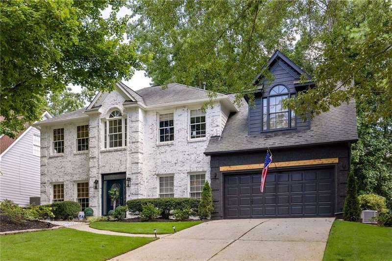 This updated classic blends timeless charm with modern touches, offering a layout designed for easy living and effortless entertaining. Inside, the main floor welcomes you with a soaring two-story foyer and 10+ foot ceilings throughout. A double-sided fireplace anchors two spacious living rooms, while the eat-in kitchen features upgraded appliances, generous counter space, and a sunny bay window overlooking the private backyard. Upstairs, the bright and peaceful primary suite boasts vaulted ceilings and a spa-inspired bath with a frameless shower, soaking tub, and eye-catching chevron-tiled accent wall. Three additional bedrooms share an updated hall bath, providing plenty of space for family, guests, or a home office. Step outside to a flat, walk-out backyard with a large patio-perfect for grilling, dining al fresco, or relaxing in privacy surrounded by mature trees. Located in a friendly swim and tennis community, you're just minutes from Avalon, downtown Alpharetta, and all your favorite spots.