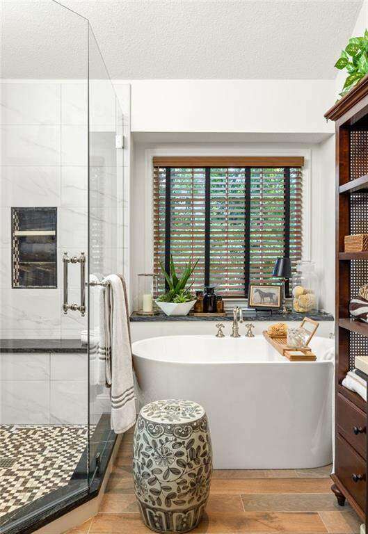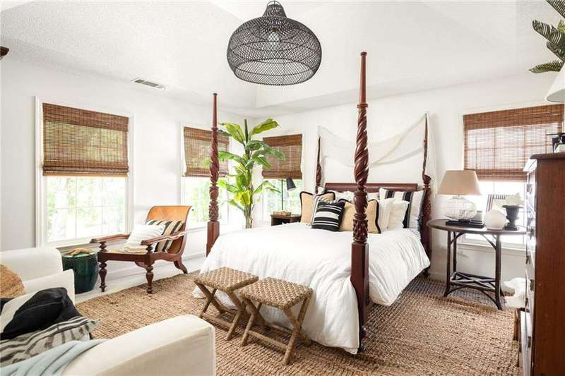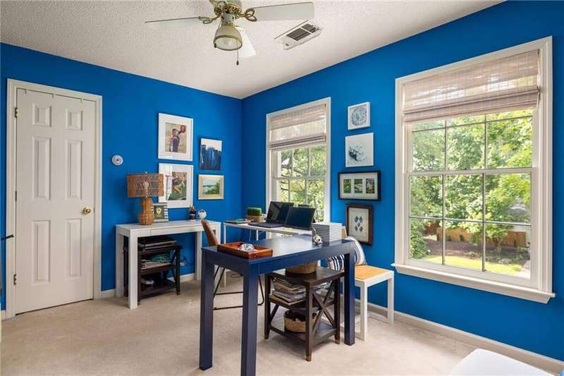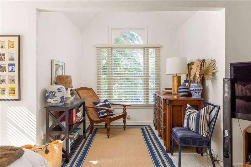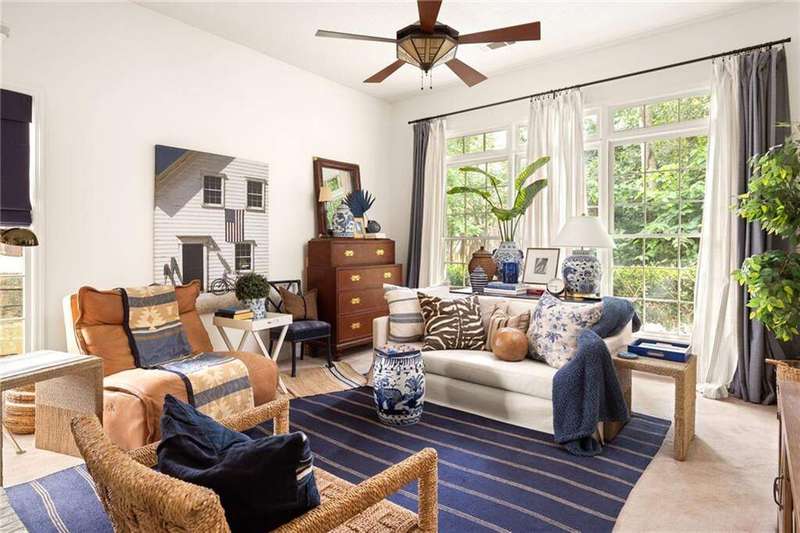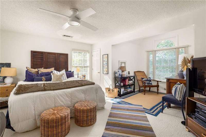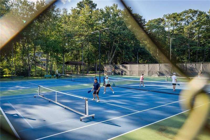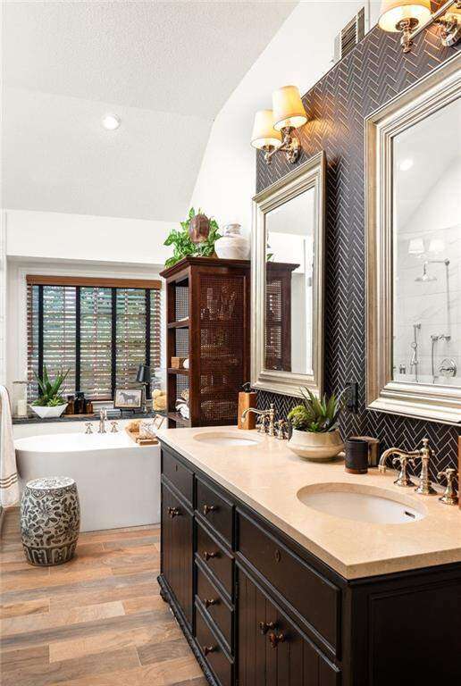 This updated classic blends timeless charm with modern touches, offering a layout designed for easy living and effortless entertaining. Inside, the main floor welcomes you with a soaring two-story foyer and 10+ foot ceilings throughout. A double-sided fireplace anchors two spacious living rooms, while the eat-in kitchen features upgraded appliances, generous counter space, and a sunny bay window overlooking the private backyard. Upstairs, the bright and peaceful primary suite boasts vaulted ceilings and a spa-inspired bath with a frameless shower, soaking tub, and eye-catching chevron-tiled accent wall. Three additional bedrooms share an updated hall bath, providing plenty of space for family, guests, or a home office. Step outside to a flat, walk-out backyard with a large patio-perfect for grilling, dining al fresco, or relaxing in privacy surrounded by mature trees. Located in a friendly swim and tennis community, you're just minutes from Avalon, downtown Alpharetta, and all your favorite spots.