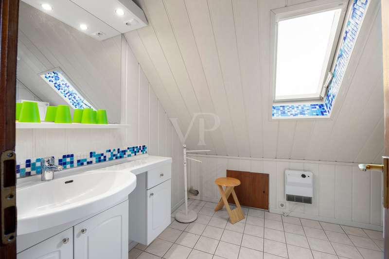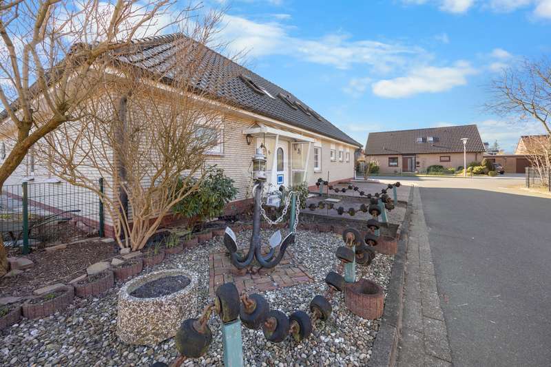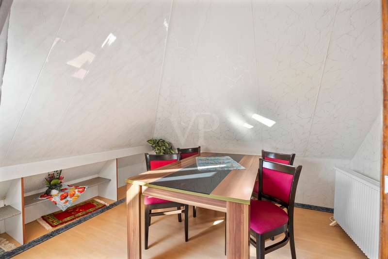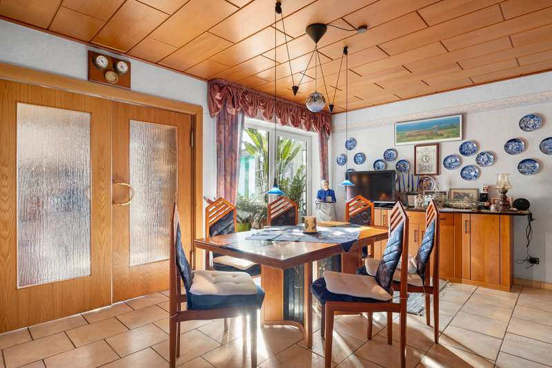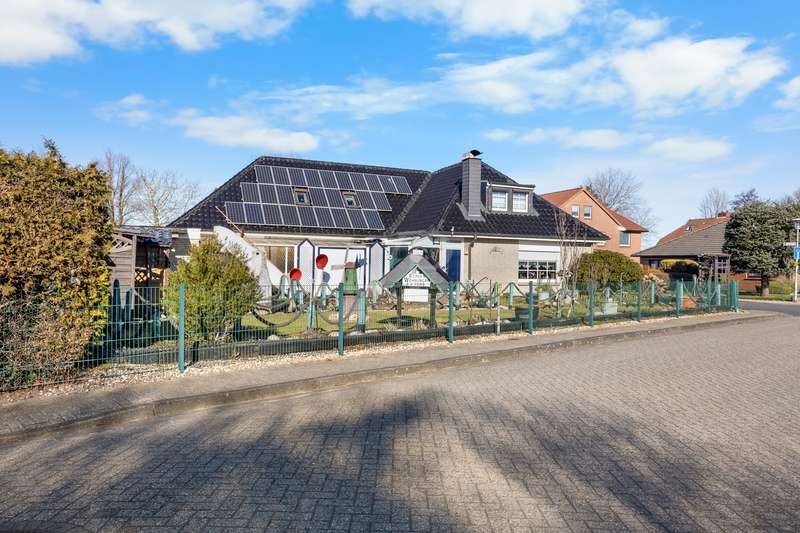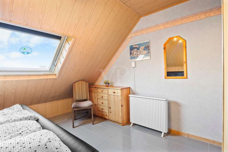 This spacious property from 1974 offers numerous possible uses - whether as a single-family home, multi-generational home, for renting out or as an investment. With a total living space of approx. 247 m², the house impresses with its well thought-out room layout and versatile usage concepts. On the first floor, a spacious living concept awaits you on approx. 170 m², offering both comfort and practical room design. You enter the hallway via the side entrance, from which a long corridor leads to the other rooms. Here you will find a spacious bedroom, a study, a utility room with plenty of storage space, a bathroom and a separate WC. The adjoining dining room offers direct access to the kitchen and the spacious living room, which is equipped with a cozy fireplace. From the living room, you can access the heated conservatory, which offers a beautiful transition to the covered terrace - perfect for enjoying relaxing hours outdoors. There is also a guest room with its own bathroom on the first floor, which is temporarily rented out by the current owners. A former garage offers further storage space and additional storage options. The top floor houses two separate residential units with their own entrances, which are ideal for permanent or vacation rentals as well as living space for family members or guests. The first apartment has approx. 40 m² and offers a living room, a kitchen, a bedroom and a bathroom. The second apartment covers approx. 37 m² and is equipped with a living room, a kitchen, a bedroom, a bathroom and an additional children's room. The property has undergone continuous energy optimization in recent years. The first floor is equipped with underfloor heating, which is supplied by the building's own PV system. The top floor is heated by energy-efficient electric heating from Wibu. In addition, the roof has already been newly insulated and tiled. The current owners have continuously maintained the house, windows and floor coverings have been partially renewed, so that the property is in a well-kept condition. The location in Hooksiel is extremely attractive and offers a perfect combination of recreation and leisure opportunities. The proximity to the beach, the marina and numerous cafés and restaurants ensures a pleasant living and vacation feeling. The property also offers lucrative rental potential due to the fact that it is already rented out. Take advantage of this unique opportunity and secure a property with a wide range of possibilities! Please do not hesitate to contact us for further information or to arrange a viewing.