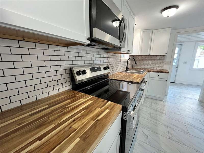 Renovated from top to bottom, this home features stunning new white shaker cabinets, rich Acacia wood countertops, and brand-new appliances ? making the kitchen a true centerpiece. Refinished hardwood floors run throughout, perfectly complementing the natural light pouring in through brand-new, energy-efficient vinyl windows. The main floor includes a conveniently located primary bedroom just off the living room and bathroom, creating an ideal layout for easy living. Upstairs, you'll find two additional bedrooms with ample storage for clothing and personal belongings. Enjoy the spacious, fully fenced backyard ? perfect for privacy, play, or pets ? and take advantage of the detached garage, which offers great potential for a workshop or additional storage. The upgrades continue outside with new vinyl siding and a newer roof, offering peace of mind and curb appeal. This move-in-ready gem blends modern comfort with timeless character in a sought-after location. Don't miss your chance to make it yours!
