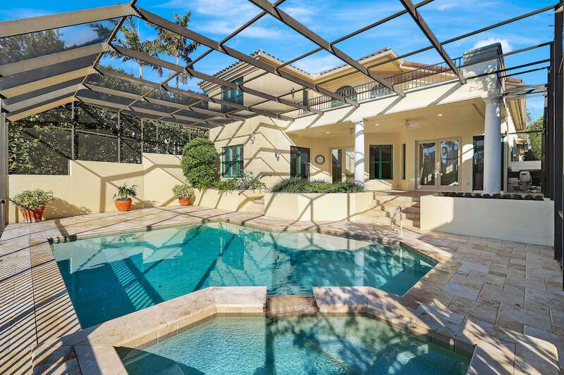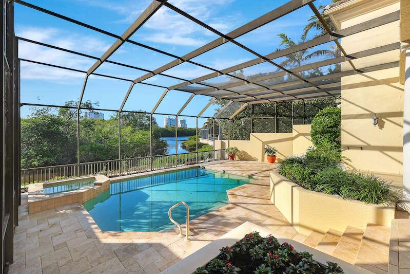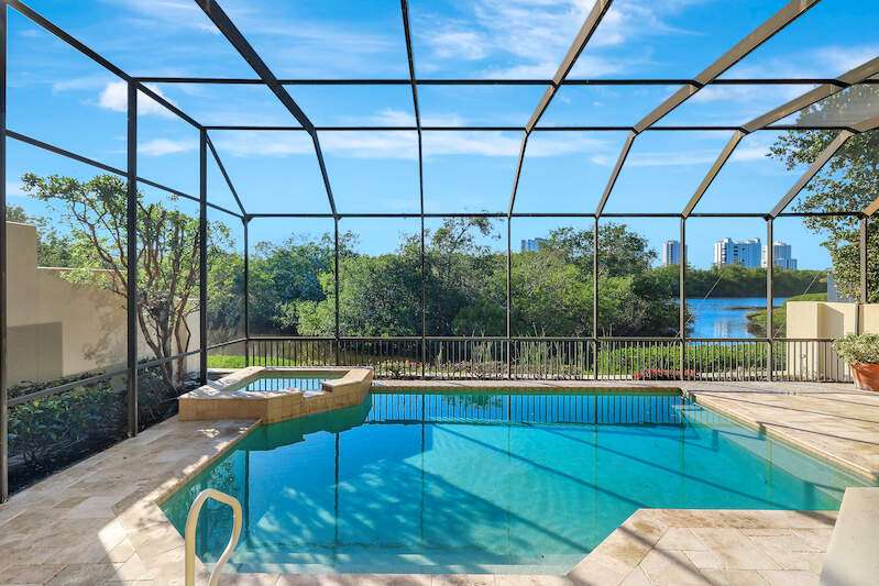 A beautiful Vizcaya villa sitting perfectly in a coveted cul-de-sac with a mesmerizing water view of a rookery island.
