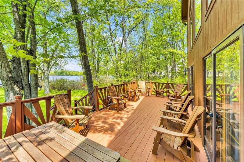 Find paradise nestled on the beautiful shore of Canadarago Lake! This well-maintained home is a truly a rare find! With 100' of lake frontage and a spacious, level yard, this home offers as much outside as it does inside! Enjoy your morning coffee on the back deck as you take in the serene lake views and spend your days swimming, boating, or paddleboarding off of your private dock. Wrap up the long summer days while enjoying the stunning sunsets over the lake. Inside the custom home, 5 bedrooms and 3 full baths offer ample space for family and friends. A spacious open-concept great room with a vaulted ceiling features a pair of double doors for easy access to the back deck and large windows to flood the home with natural light. There are two first-floor bedrooms, two full bathrooms and a laundry room to complete the first floor. The second floor offers the primary bedroom overlooking the great room below and boasts an expansive ensuite with walk-in closet and large soaking tub. A sitting area has the perfect view of the lake and an additional room can be another roomy bedroom, office or family room. The third floor offers a bedroom with a little more privacy if desired. Additional highlights include a charming covered front porch and attached garage. This is the perfect property to enjoy all that lake living has to offer!