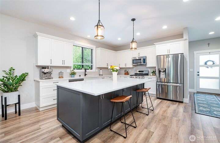 When you're not ready to give up having a yard and still want a private outdoor space to call your own...Sea Smoke @ Semiahmoo is the answer! This newer single level 3 bedroom northwest contemporary stunner checks all the boxes: high ceilings & open concept kitchen/dining/living areas with massive 4'x7' island. You'll love the upscale modern finishes & the custom millwork that frames the gas fireplace. The primary suite boasts a luxurious ensuite bathroom with dual vanities, tiled walk-in shower & walk-in closet. Light & bright design with an abundance of windows + storage. Fantastic thoughtfully landscaped corner lot backs to a greenbelt & is just steps to walking paths + all the amenities available at the world famous Resort Semiahmoo.