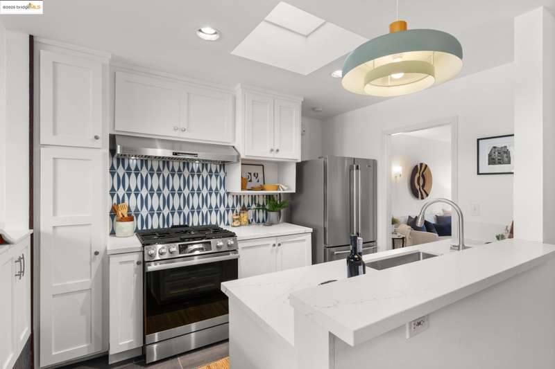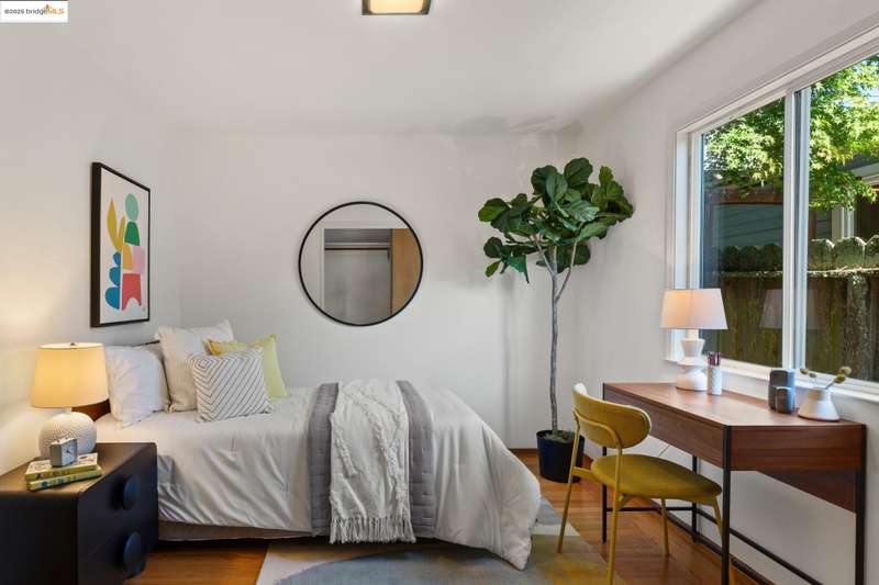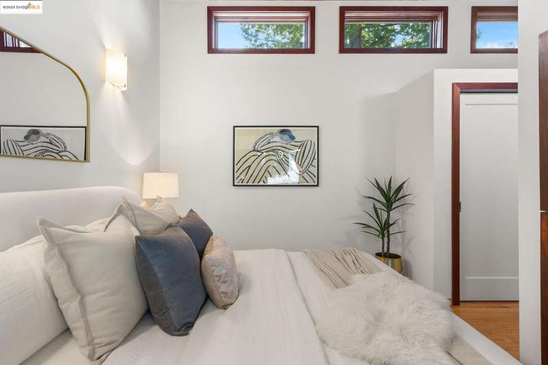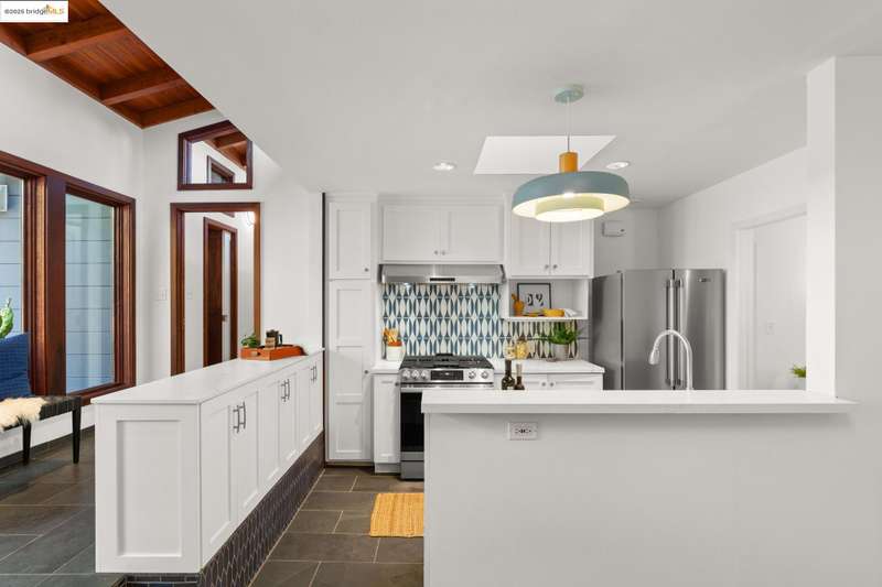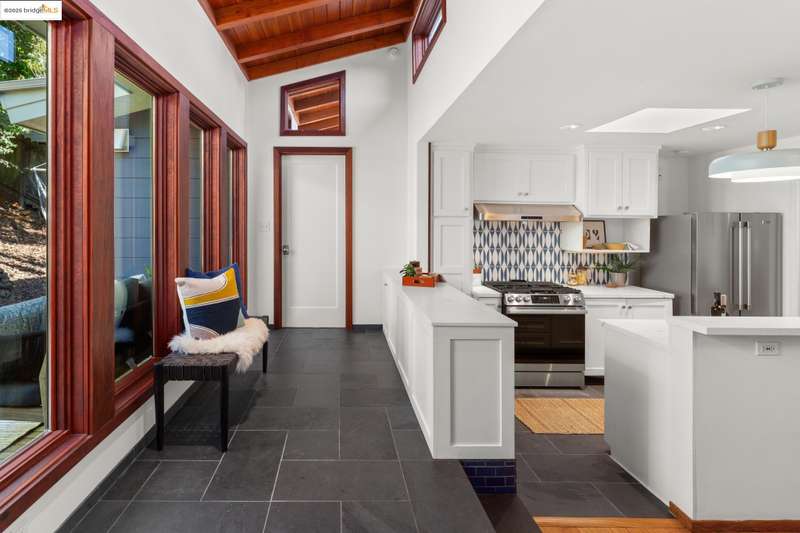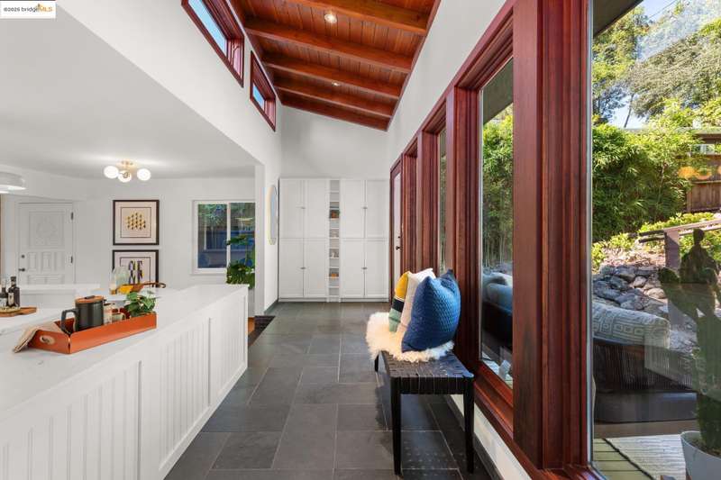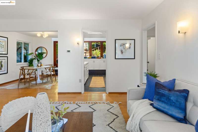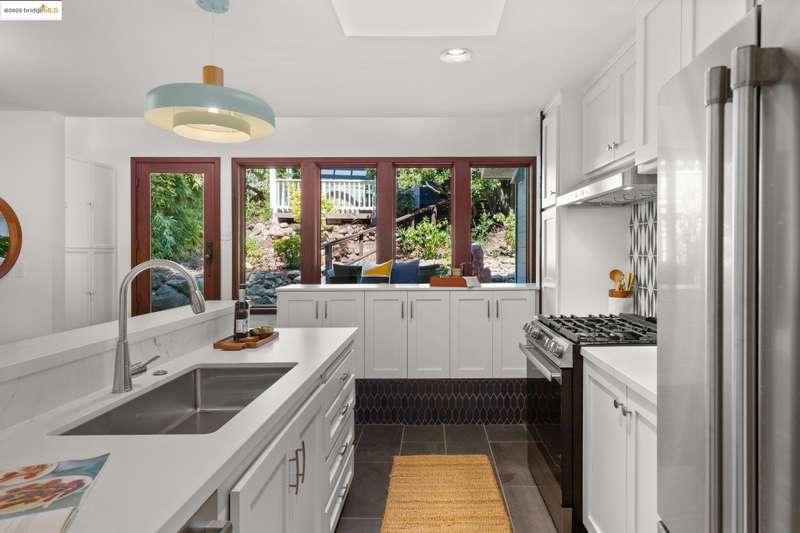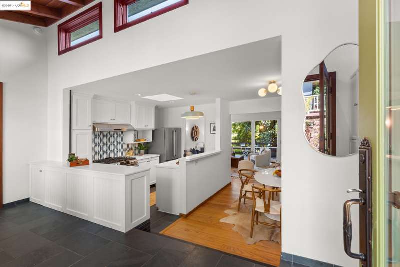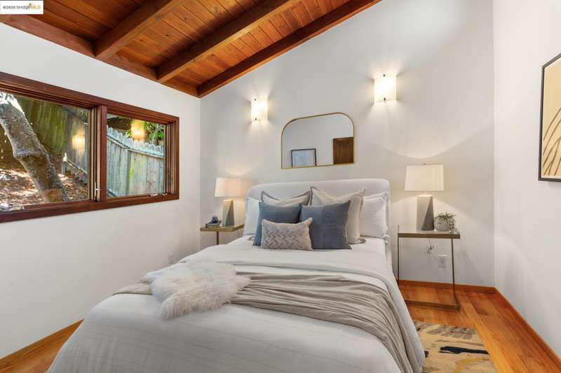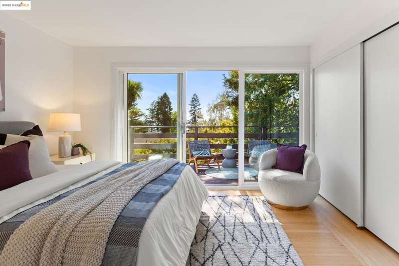 Serene mid-century oasis in the Berkeley Hills! Flooded with light from floor-to-ceiling windows, this airy 3BR/2BA lovingly updated and maintained home features an open floor plan, high ceilings, hardwood floors, a fireplace, and brand-new designer kitchen and bath remodels. Expansive tiered decks under mature foliage and fruit trees offer seamless indoor-outdoor flow, filtered Bay views, and a hot tub retreat. With a 2-car garage, abundant storage, and a private verdant setting, this is Berkeley Hills living at its best. Unbeatable location near parks, schools + top commuter routes, this extraordinary property is a private sanctuary!