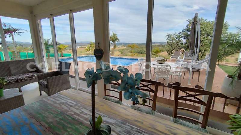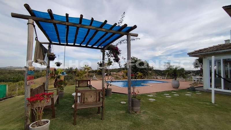 Linda chácara, com vista incrível do nascer e de pôr do Sol. Uma casa e uma cabana temática. Projeto diferenciado. A casa tem 4 dormitórios dendo 2 suítes. Área gourmet. Piscina. Canil. Pomar. A cabana é incrível, Imóvel com possibilidade de renda. CONHEÇA.