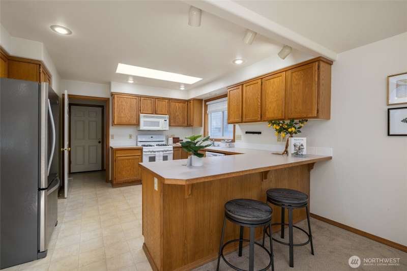 NEW PRICE, NEW ROOF! Just installed by Mt. Baker. Well maintained, primary on main, 3 bedroom/2 bath home. Southern exposure and skylights let in lots of light and warmth, and a gracious floor plan provides easy living. This home has mature landscaping, a fenced yard, and an extra driveway to park an RV or boat. Garage has lots of shelving and storage. Conveniently located close to the Anacortes Forest Lands, and just a quick drive to Washington Park or Deception Pass. The ferry system is a 5 minute drive and downtown Anacortes is 10 minutes away. Oak Harbor is a 30 minute drive. I-5 and points North or South is 30 minutes away. Excellent location with quiet and privacy, but easily accessible to everything that Anacortes offers.