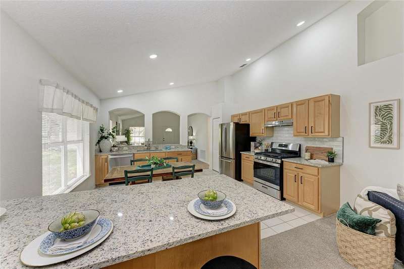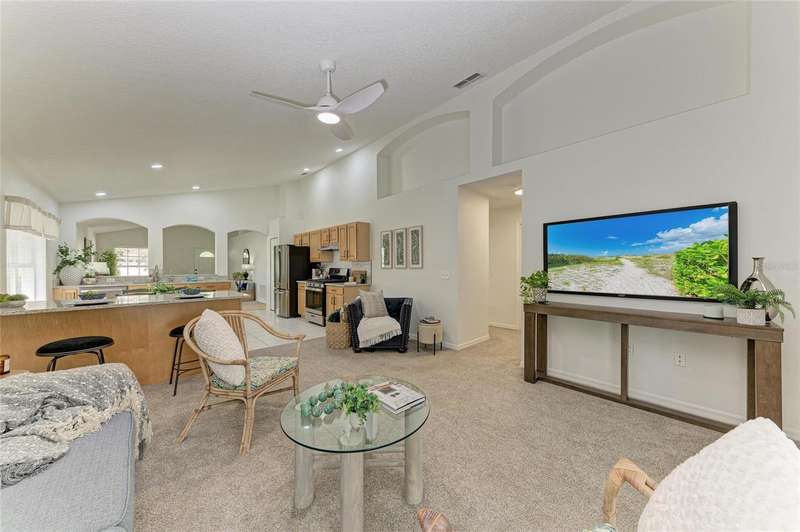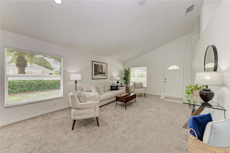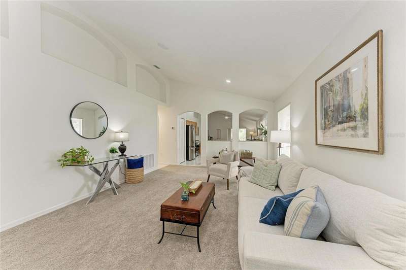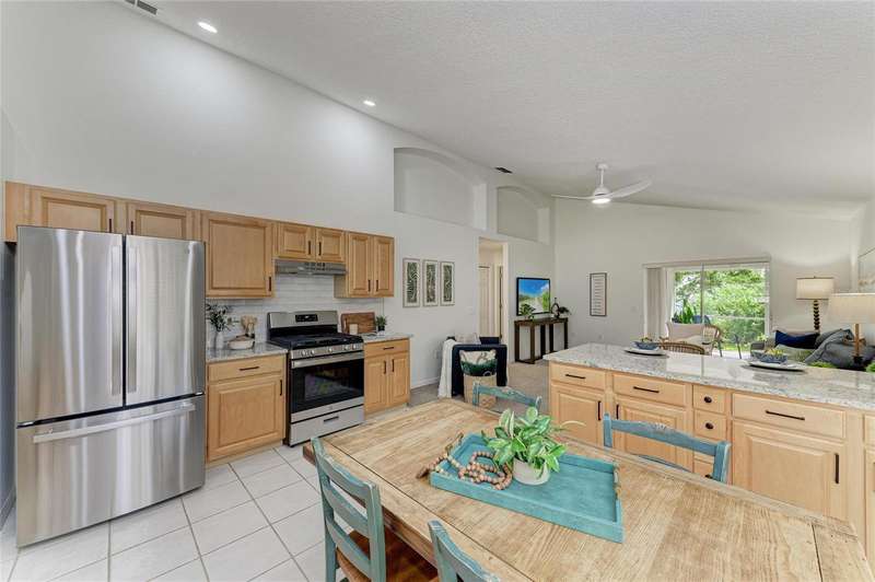 Welcome to your peaceful retreat in the heart of Summerfield Forest, that enjoys a desirable location perfectly situated away from main roadways on a quaint cul-de-sac. Unlike other Summerfield enclaves, Summerfield Forest features its own community pool, and with this home located right next door, you’ll enjoy all the benefits of a pool lifestyle without any of the maintenance. This delightful 3-bedroom, 2-bathroom home is boasting a host of recent upgrades that make it move-in ready. Step inside to an airy open floor plan with vaulted ceilings, large windows, and fresh interior paint (2025). All ceiling lighting has been updated to sleek LED flat fixtures and fans with remotes (2025), and new smoke detectors (2025) ensure peace of mind. The spacious living and dining areas flow seamlessly into the updated kitchen, which shines with brand-new granite countertops (2025), a large peninsula with storage and room for seating, and a complete suite of all-new stainless-steel appliances (2025). Just off the kitchen, the family room features custom built-in shelving and sliding glass doors that open to the screened lanai, creating an effortless indoor-outdoor lifestyle. The primary suite that’s tucked away offers a serene retreat with a walk-in closet and an en-suite bath featuring new quartz countertops (2025), updated plumbing fixtures and toilets (2025), a spa-like soaking tub, and a walk-in shower. Two comfortable guest bedrooms share a beautifully refreshed guest bath, also upgraded with quartz counters and new fixtures (2025). Beyond the interior, this home has been thoughtfully cared for inside and out. The exterior, porch, and lanai were freshly painted (2025), the garage floor has been newly refinished (2025), and the roof was replaced recently (2019). A brand-new sprinkler system (2025) keeps the landscaping lush and vibrant. Mechanically, the home is equally strong, with a new A/C unit (2021) still under a transferable maintenance contract through July 2026 and a new thermostat installed (2025). Summerfield Forest also enjoy low HOA fees. The neighborhood offers access to Lakewood Ranch’s many amenities, including parks, nearby Heron’s Nest Nature Park, walking trails, and playgrounds, as well as convenient shopping and dining. With top-rated schools nearby and the Gulf Coast’s stunning beaches just a short drive away, this home provides the very best of Florida living.