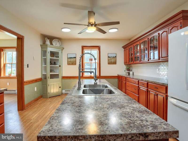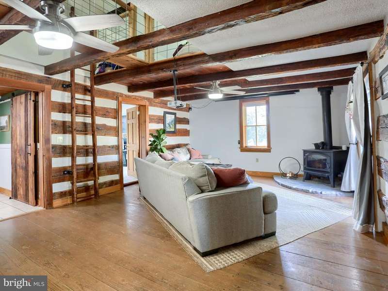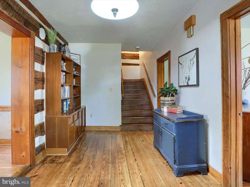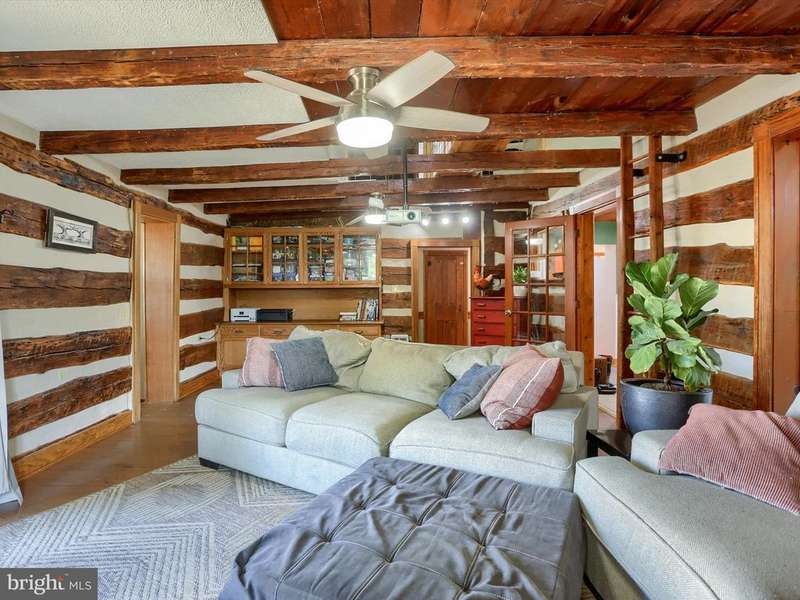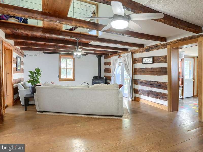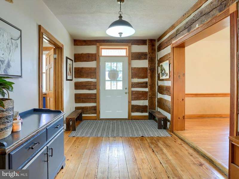 Step inside this Beautifully Renovated Log & Frame Home with Timeless Character! This old farmhouse offering 3,751 sq. ft. of thoughtfully updated living space while preserving its rustic charm. Believed to be built originally in 1812 (tax records say 1910). The upper level consists of 4 spacious bedrooms and a full bath, while the main level provides the primary bedroom and newly updated full bathroom with white subway-tiled walls, soaking tub, double vanity and walk in shower. The warm and welcoming living room features exposed log beams, an open loft, new fireplace and a built-in hutch. A large, sunlit eat-in kitchen with an island, new tile backsplash, SS appliances, built-in corner cabinet and seamlessly connects to the generous dining room with its own antique corner cabinet. Main level also features 2 large walk-in pantry's, a cozy living room/den with fireplace, kids playroom and a convenient craft/ laundry room. Additional highlights include a full attic for storage, two garages, and a workshop?all set on a level one-acre lot perfect for enjoying both indoor and outdoor living.