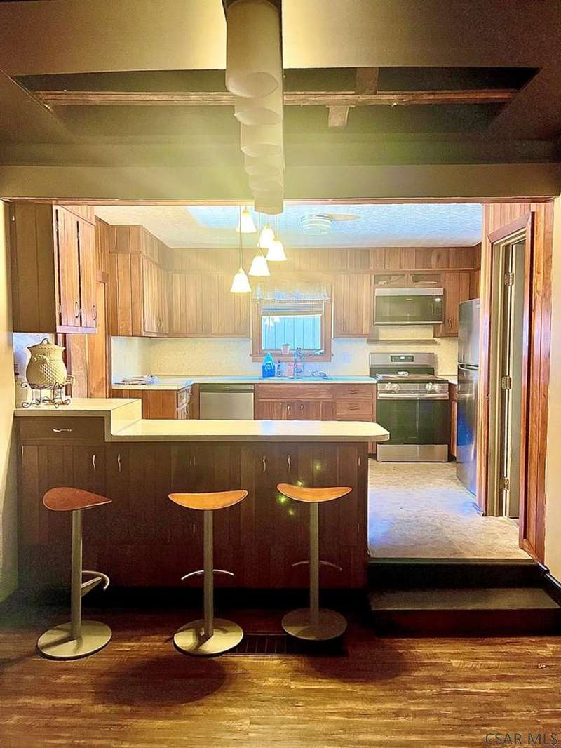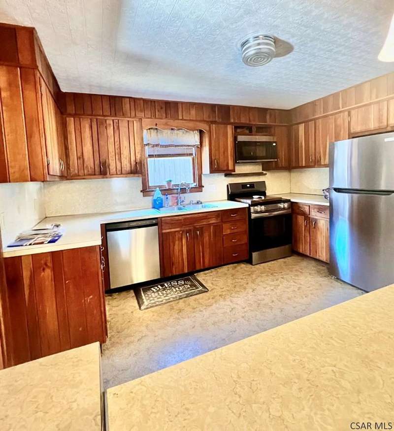 Located on a quite street close to the Great Allegheny Passage, dining, lodging, many year-round outdoor activities and a brewery just minutes away makes this delightful home and its many updates a must see! From it's charming front porch to it's fenced in back patio with deck and outdoor lights, it is perfect for entertaining friends and family. Main floor has a large living room with a gorgeous brick fireplace. The kitchen and dining room are separated by an adorable breakfast bar. The laundry room has newer washer, dryer and a ton of shelving for extra storage. There is also a small 4th bedroom that would make a great play room, craft room or office and a beautifully remodeled bathroom on main level. Upstairs you will find a full bathroom, three nice sized bedrooms and a great view of the mountains! Home has a newer high efficiency furnace and hot water tank. All appliances are newer. Behind house is the oversize two car garage. Rockwood School is only a half mile away. A MUST SEE!