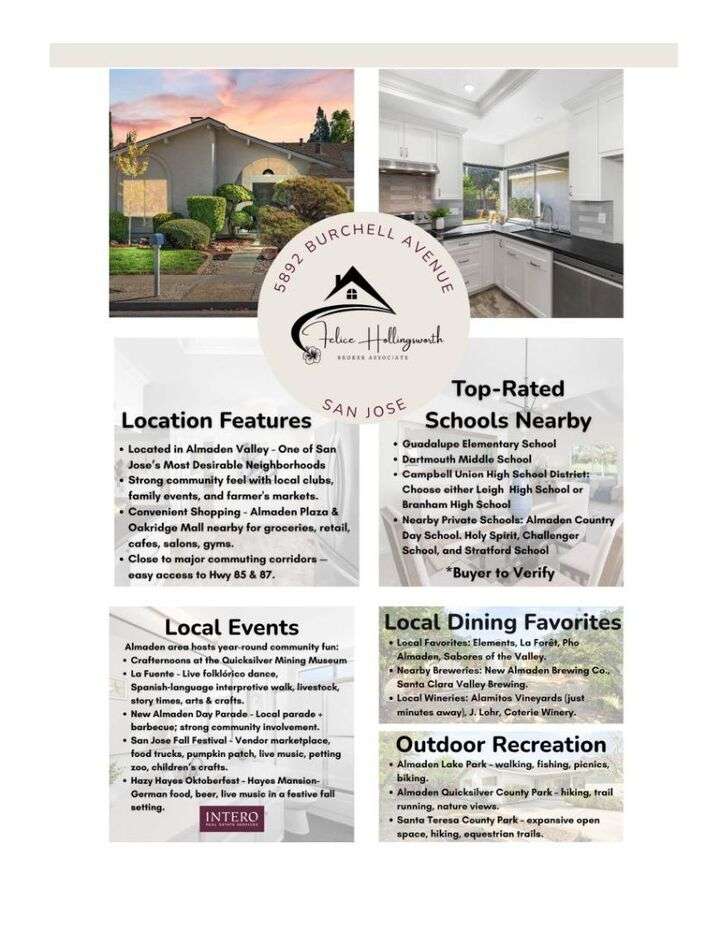 Discover comfort, convenience, and the beauty of Almaden Valley living in this updated 4-bedroom, 2.5-bath home offering 1,905 sq. ft. of living space on an 8,050 sq. ft. lot. Thoughtfully refreshed with fresh interior and exterior paint, brand-new carpet, modern lighting fixtures, and elegant bathroom updates--including new quartz vanity tops and mirrors. Highlights: *Updated kitchen with sleek finishes and generous counter space *Solar panels for energy efficiency and cost savings *Attached 2-car garage with built-in shelving and ample storage *Spacious backyard featuring fruit trees galore: 2 tangerine, 2 avocado, 2 loquat, plus fig, orange, persimmon, lime, and lemon--perfect for the home gardener or those who simply love fresh fruit! *Across from T.J. Martin Park, offering expansive green space, playgrounds, and trails right outside your door Top-Rated Schools: *Guadalupe Elementary School *Dartmouth Middle School *CUHSD Free Zone--Choose either Branham High or Leigh High