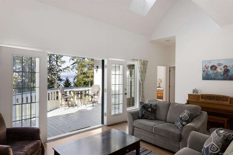 Situated on 1.69 acres in the coveted Saanich Inlet, this picturesque property enjoys western exposure, ocean views, and spectacular sunsets. The charming home offers over 4,300 sq. ft. of living space with high ceilings, including a vaulted family room, and a layout that flows seamlessly to the outdoors. French doors open to a spacious deck overlooking the water—perfect for entertaining or relaxing mornings. Surrounded by walking trails and mature landscaping, the flat, usable land provides exceptional privacy and flexibility. Currently operating as an active bed & breakfast, the property is ideally suited for multi-generational living, a home-based business, or income potential. Steps to public beach access, with hiking trails at nearby John Dean Park, and only a short 5-minute drive to Brentwood Bay’s local amenities, this remarkable water-view home offers the best of West Coast living.