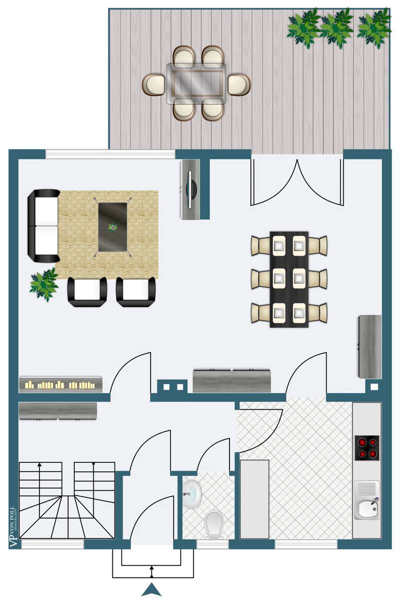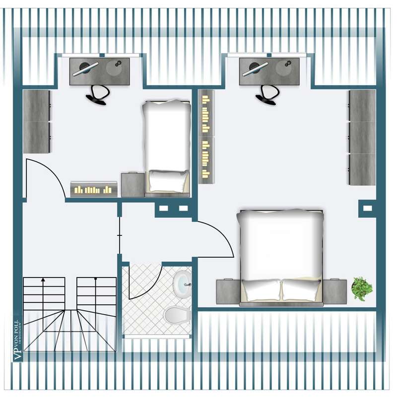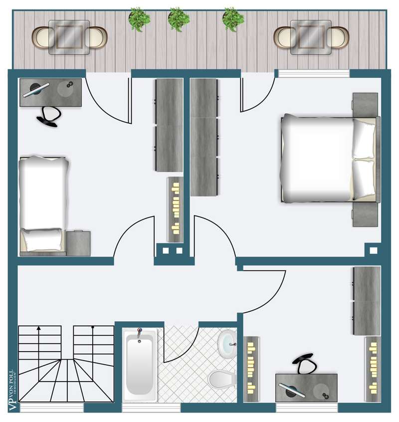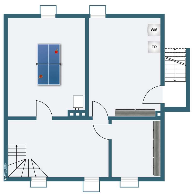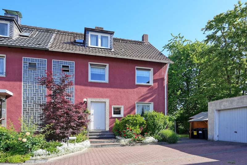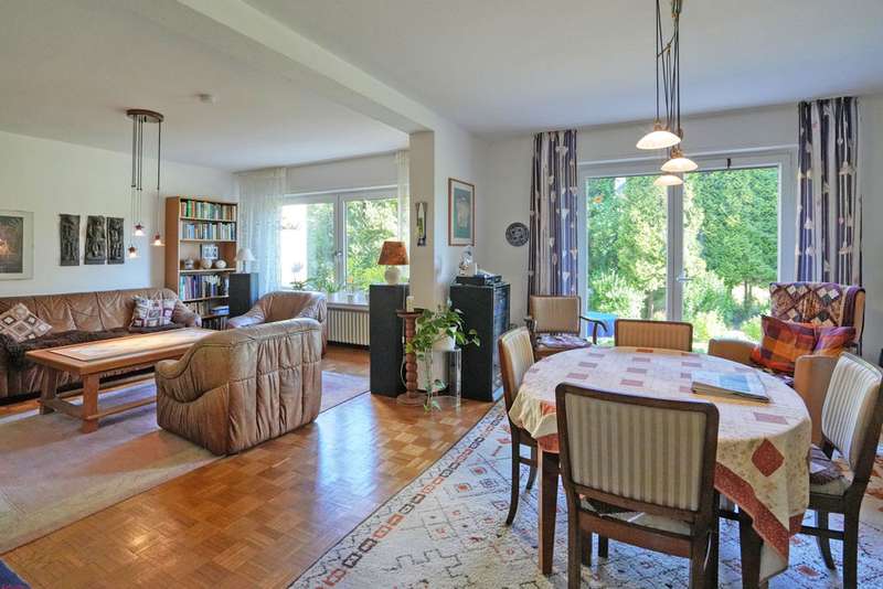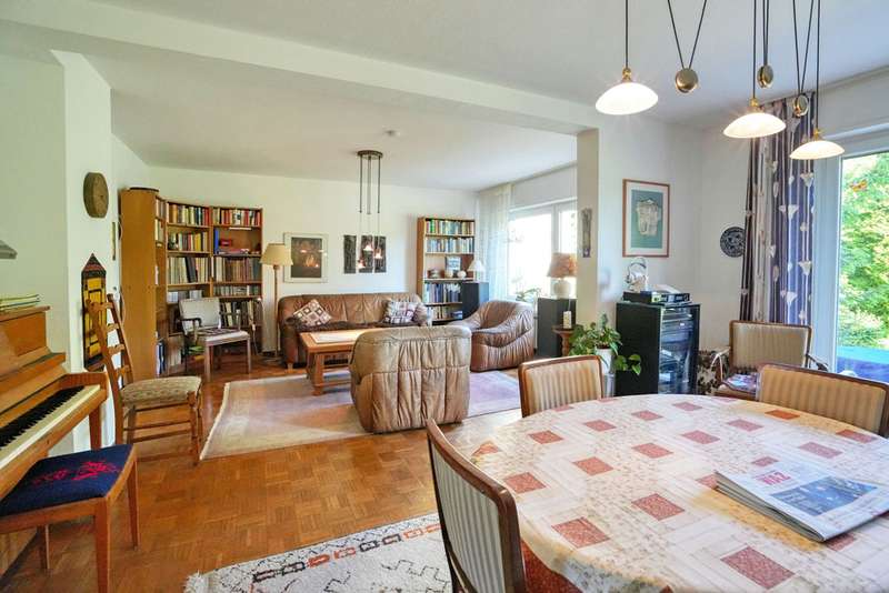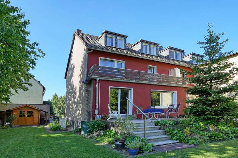 This spacious semi-detached house was built around 1963 on a large plot in solid construction. It has a full basement. On the first floor, you first enter the vestibule and then the hallway with the guest WC. The kitchen is at the front of the house and the spacious living/dining area is at the rear. From here you can access the terrace and the garden. The upper floor contains the spacious bedroom, a children's room, both with access to a balcony, a smaller room that is suitable as a study and the daylight bathroom, which is equipped with a bathtub. The top floor offers two rooms of different sizes and a WC. The utility rooms are located in the basement. There is access to the garden via a staircase from the utility room. The exceptionally large garden and terrace offer the opportunity to relax. Vegetable beds have been planted in the garden and there is a small greenhouse. There is also plenty of space to play and run around. A garage and a parking space in front of the garage complete the offer. Some of the house's furnishings no longer meet modern living standards. Renovation is required. This opens up the opportunity to realize a contemporary living concept on a very solid basis. The leasehold contract for the property runs until 2061. The ground rent will be redefined with the sale and is expected to be around €2,000 per year. In addition, the leaseholder requires a high level of equity.