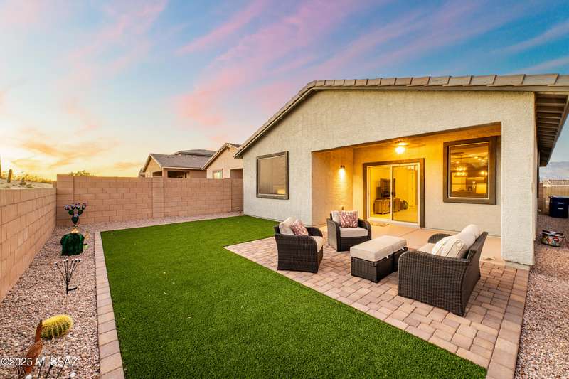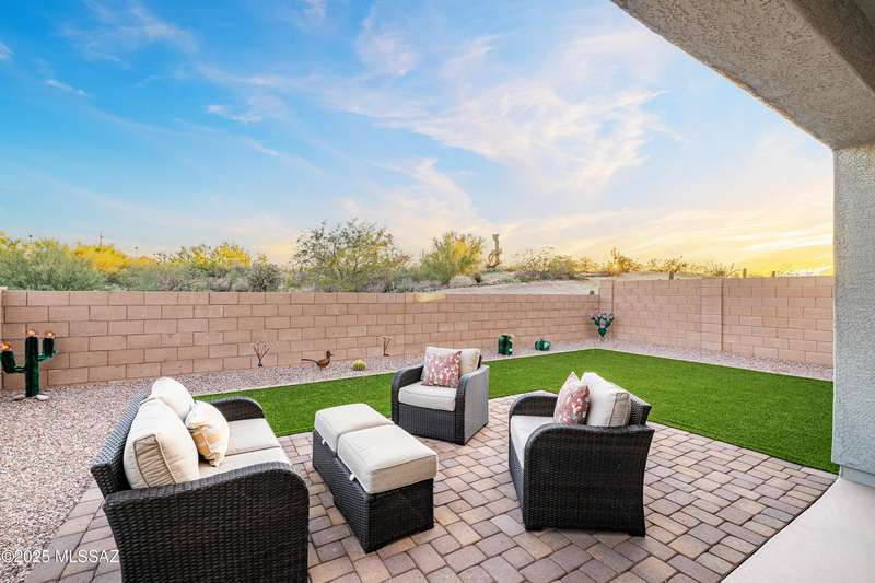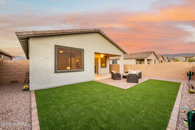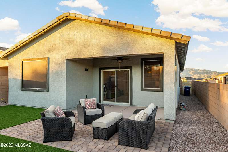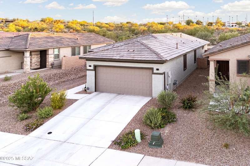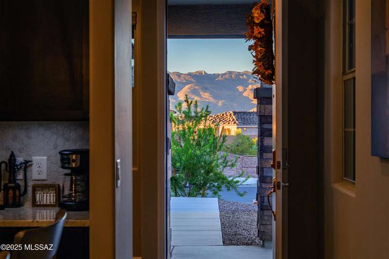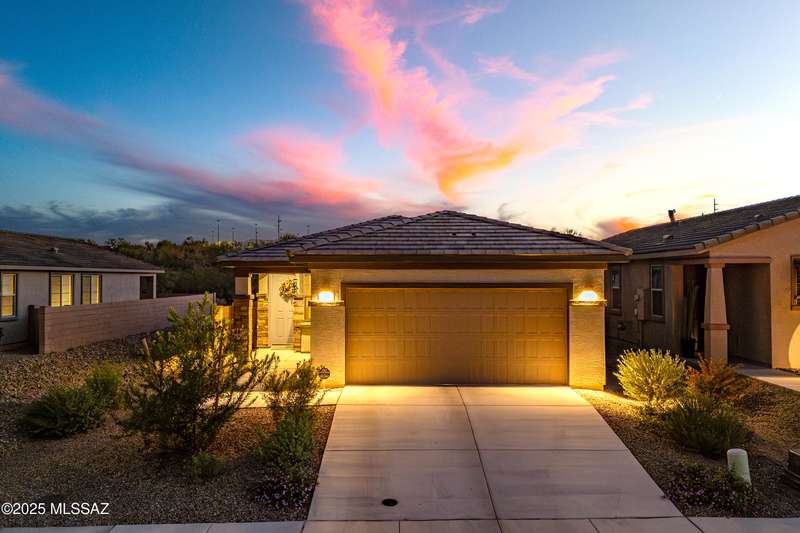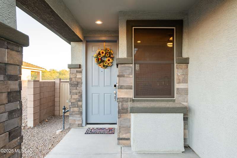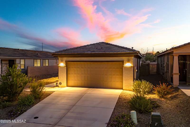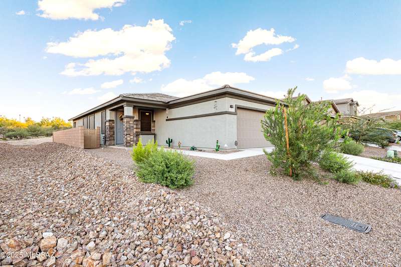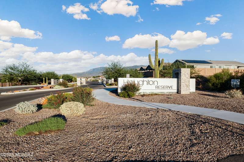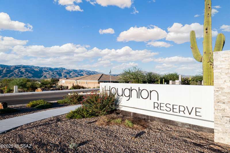You know what is not often found in a nearly new home? Additional upgrades like these: a beautifully finished rear yard featuring artificial turf, pavers and decorative gravel, high-quality electric window coverings, a water softener, epoxied garage floors and ceiling racks, solar screens, fans in every room and welcoming neutral paint throughout. The sellers have invested over $38k after purchasing and it's your opportunity to enjoy the benefits!Located in the serene, gated eastside community of Houghton Reserve, this 3-bedroom + den, 2-bath home offers 1,602 sq ft of thoughtfully designed space on a premium lot bordering open desert and common area. Enjoy sweeping Catalina Mountain views from your front porch and peaceful desert vistas from the back. Inside, you'll find quartz