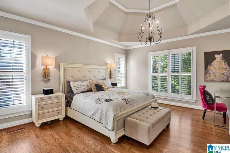 Welcome to this 4BR/3.5BA home in gated Highland Lakes, zoned for top-rated Oak Mountain schools. With nearly 2,700 sq. ft. above grade plus an unfinished 1,880 sq. ft. basement and 3-car garage, this home offers plenty of flexibility. The main level includes a two-story foyer, dining/office, open kitchen with granite island and keeping room, and a bright two-story den with large windows. The master suite boasts cathedral ceilings, hardwoods, chandelier, soaking tub, dual vanities, and walk-in closet. Upstairs features a second master with private bath and two bedrooms with Jack & Jill. Outdoor living shines with a screened-in deck plus an open area, and a covered deck on the basement level overlooking the backyard. Highland Lakes offers private lakes, boat launches, fishing, playgrounds, and gate attendants—all on a cul-de-sac street. Welcome Home!