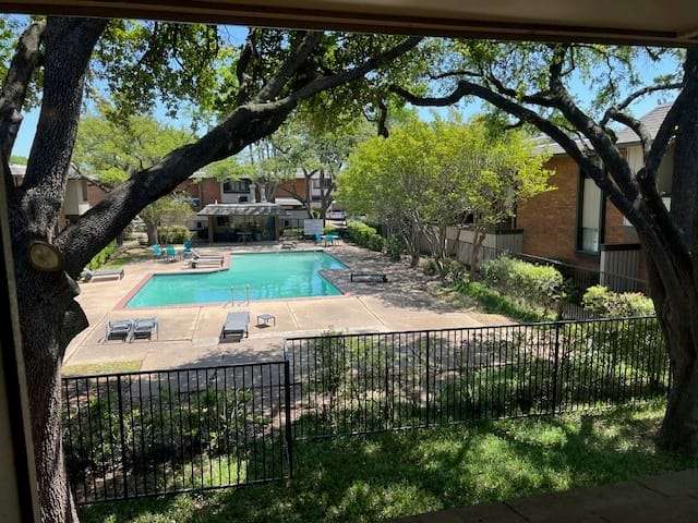 Lovely updated condo in established neighborhood of Farmers Branch! This condo is move-in ready with well appointed updates throughout. Light and Bright galley kitchen features recently installed SS Whirlpool Appliances, granite countertops with window overlooking a private covered patio with room for garden and outdoor entertaining. Recently installed: luxury vinyl flooring downstairs, carpet on stairs and upstairs, upgraded light fixtures (living room, dining room. kitchen, and bathroom), ceiling fans (living room, bedrooms), upgraded light fixtures (kitchen, living and dining rooms, and baths), cabinet pulls, door knobs and stops, and fresh paint throughout! Other updates include new handrail for stairs, toilet in upstairs bath, new shades in kitchen and bedrooms. Excellent storage: Large walk in closets, storage room downstairs, and linen closet upstairs. Views of the pool from the patio, living room and upstairs bedroom! Located near Brookhaven Country Club, Dallas College Brookhaven Campus, and Parks (Oran Good, Rawhide, Mallon). Local shopping and entertainment nearby with easy access to 635, Dallas North Tollway, I-35. This wonderful unit is just waiting for a new owner! Must See!