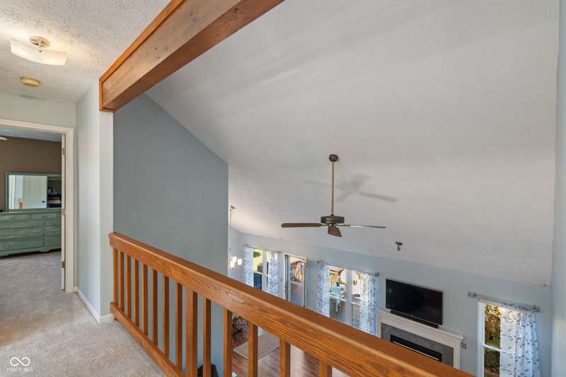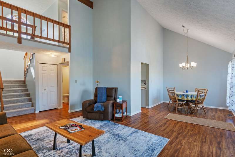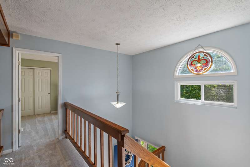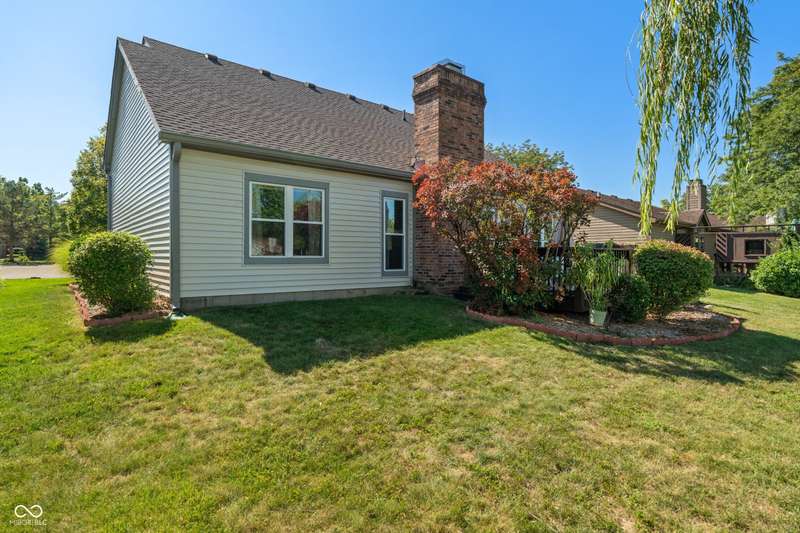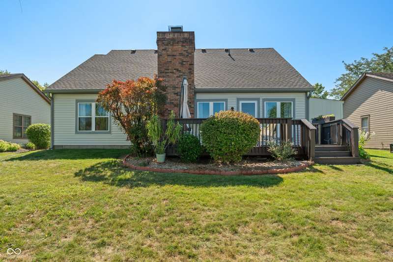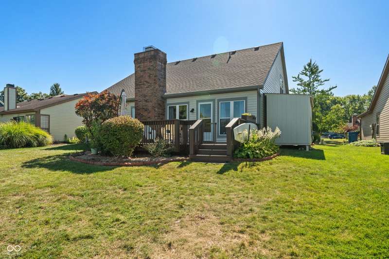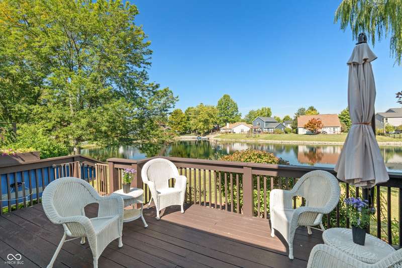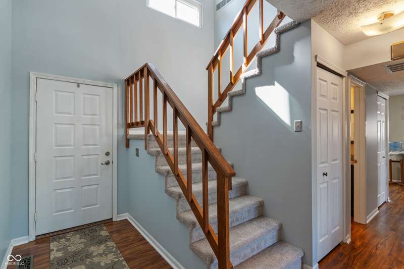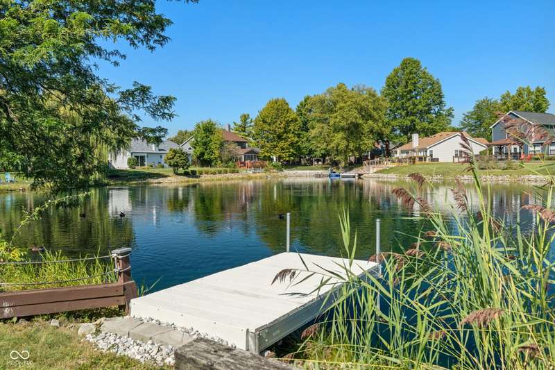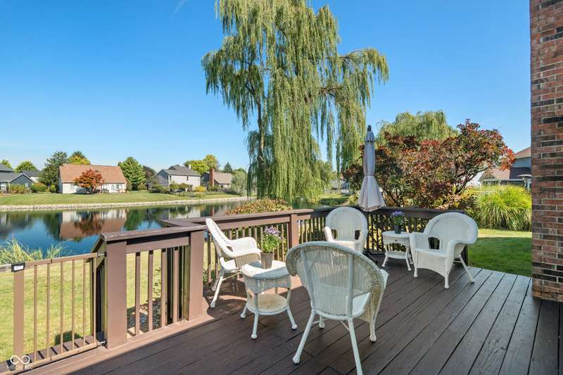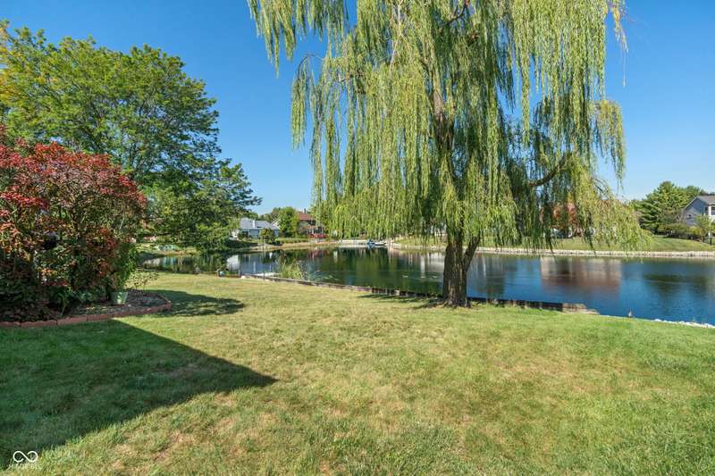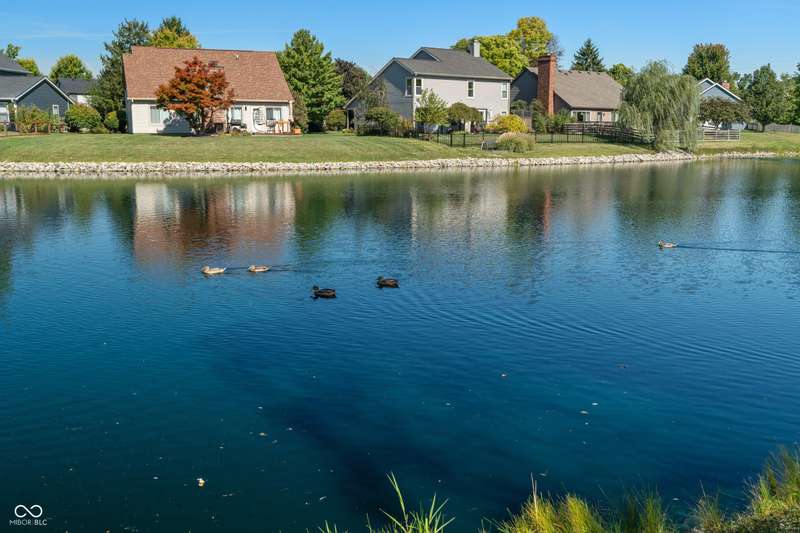 Crave quiet settings but want to be near the convenience of shopping, schools, restaurants & a quick commute? Looking for main level living w/ an open concept, but need space & privacy for family & guests? Look no further than this 3bd/2.5 bath Lawrence Township gem! Soaring 2 story entry welcomes you inside this spacious 1 1/2 level home. Vaulted ceilings, open stairwell, fresh paint & LVP flooring highlight main level. Kitchen boasts painted white cabinets w/ undermount lighting, quartz countertops, tile backsplash & ss appliances. Coveted main level primary bedroom features full tub w/ separate shower, large walk-in closet. 2nd level features brand new carpet throughout & convenient full bath. Savor the scenic, peaceful pond overlooking the backyard from either the deck or dining room. Enjoy peace of mind w/ newer siding, roof, gutters & windows. Ideally located mere minutes from 465, Fishers Events Center, Top Golf & dozens of restaurants & entertainment options. Don't dawdle & let this one slip through your fingers!