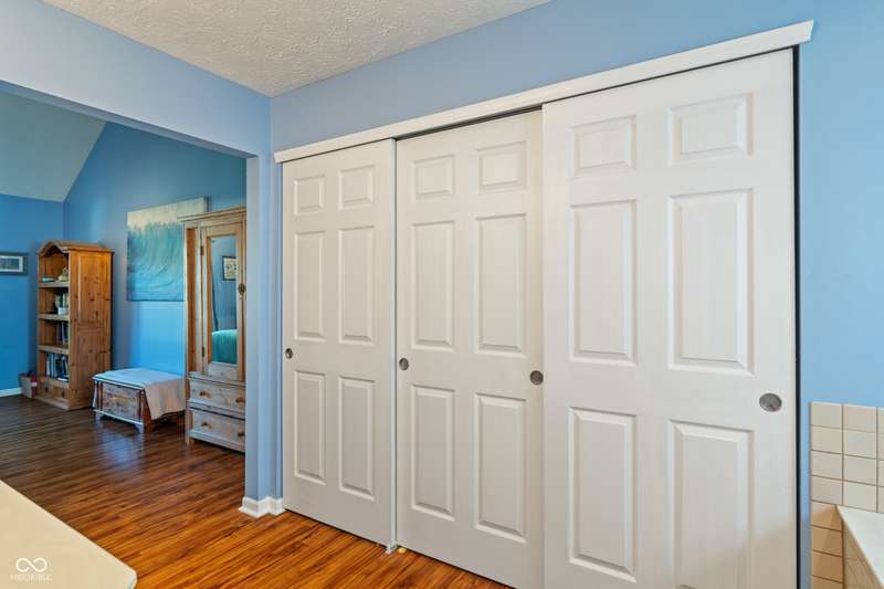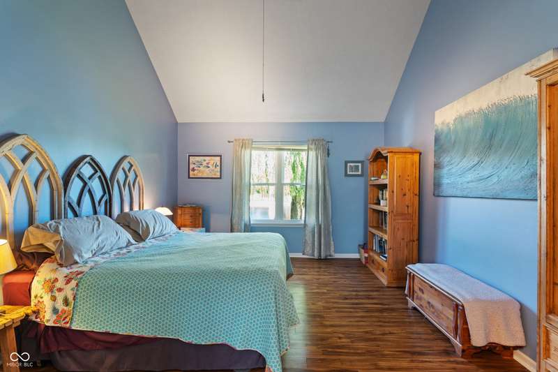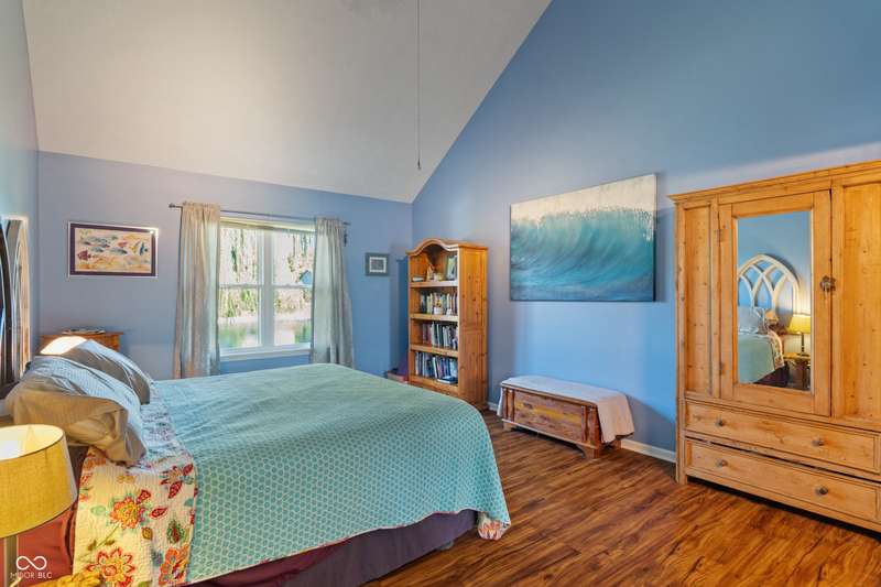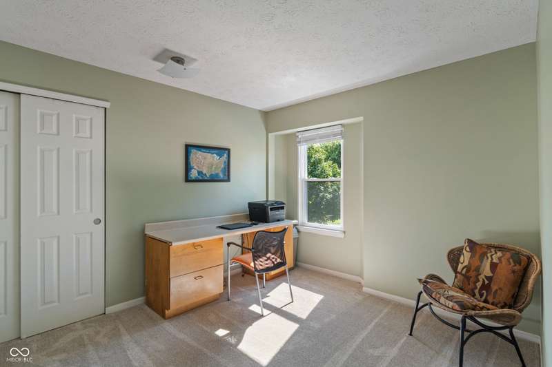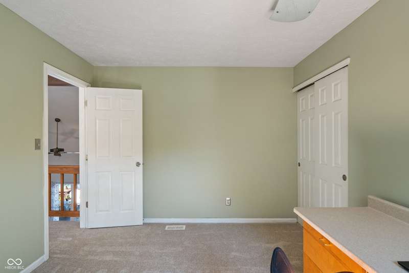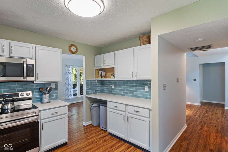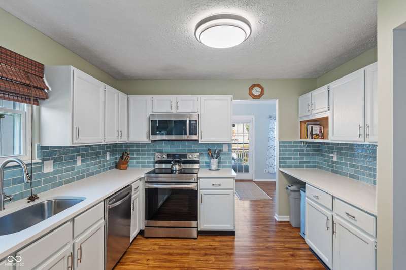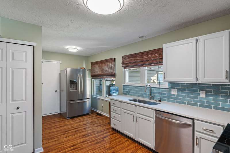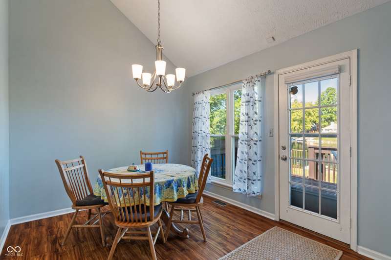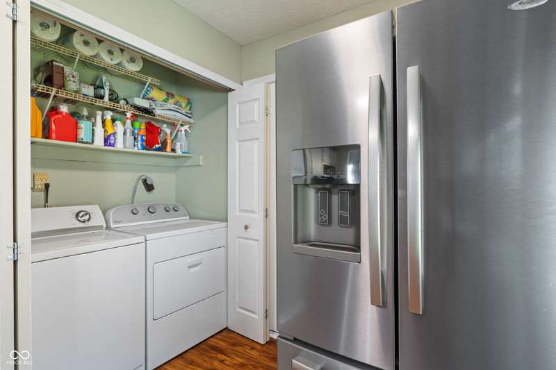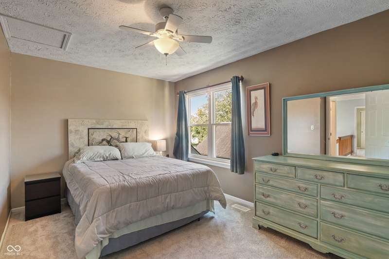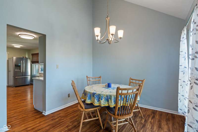 Crave quiet settings but want to be near the convenience of shopping, schools, restaurants & a quick commute? Looking for main level living w/ an open concept, but need space & privacy for family & guests? Look no further than this 3bd/2.5 bath Lawrence Township gem! Soaring 2 story entry welcomes you inside this spacious 1 1/2 level home. Vaulted ceilings, open stairwell, fresh paint & LVP flooring highlight main level. Kitchen boasts painted white cabinets w/ undermount lighting, quartz countertops, tile backsplash & ss appliances. Coveted main level primary bedroom features full tub w/ separate shower, large walk-in closet. 2nd level features brand new carpet throughout & convenient full bath. Savor the scenic, peaceful pond overlooking the backyard from either the deck or dining room. Enjoy peace of mind w/ newer siding, roof, gutters & windows. Ideally located mere minutes from 465, Fishers Events Center, Top Golf & dozens of restaurants & entertainment options. Don't dawdle & let this one slip through your fingers!